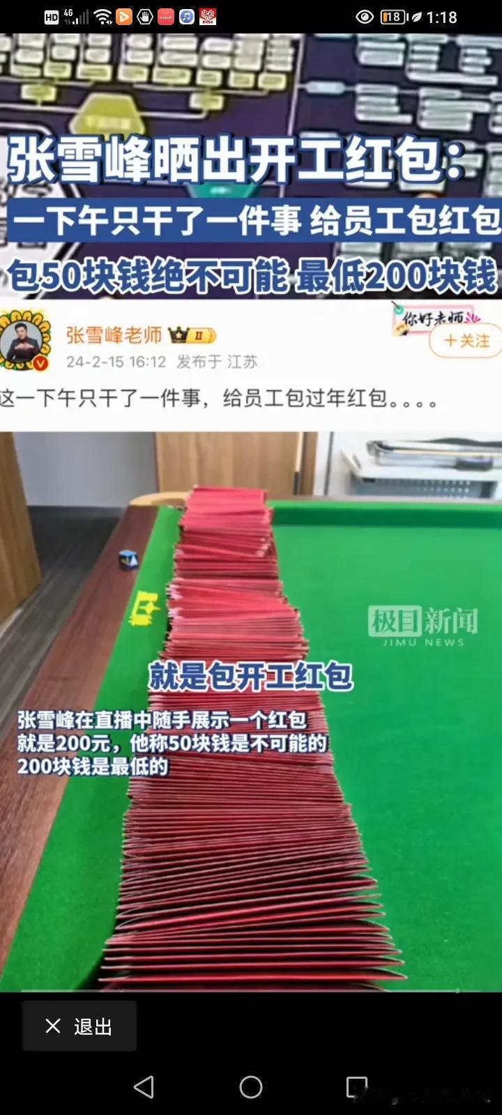 张雪峰开工给员工发红包了,他发放的红包是多少钱呢?张雪峰开心的给排着长龙的员工发红包,昨天下午他就直播,然后告诉网友:“我一个下午就干了这样一件事”,网友问他,你给员工包了多少钱的时, 屏幕上就飘出来了一个50。。 然后他笑着说,开玩笑,我有可能包50吗?丢不丢人? 不得不说,他是懂网络营销的! #我来唠家常# #记录我的2024#
