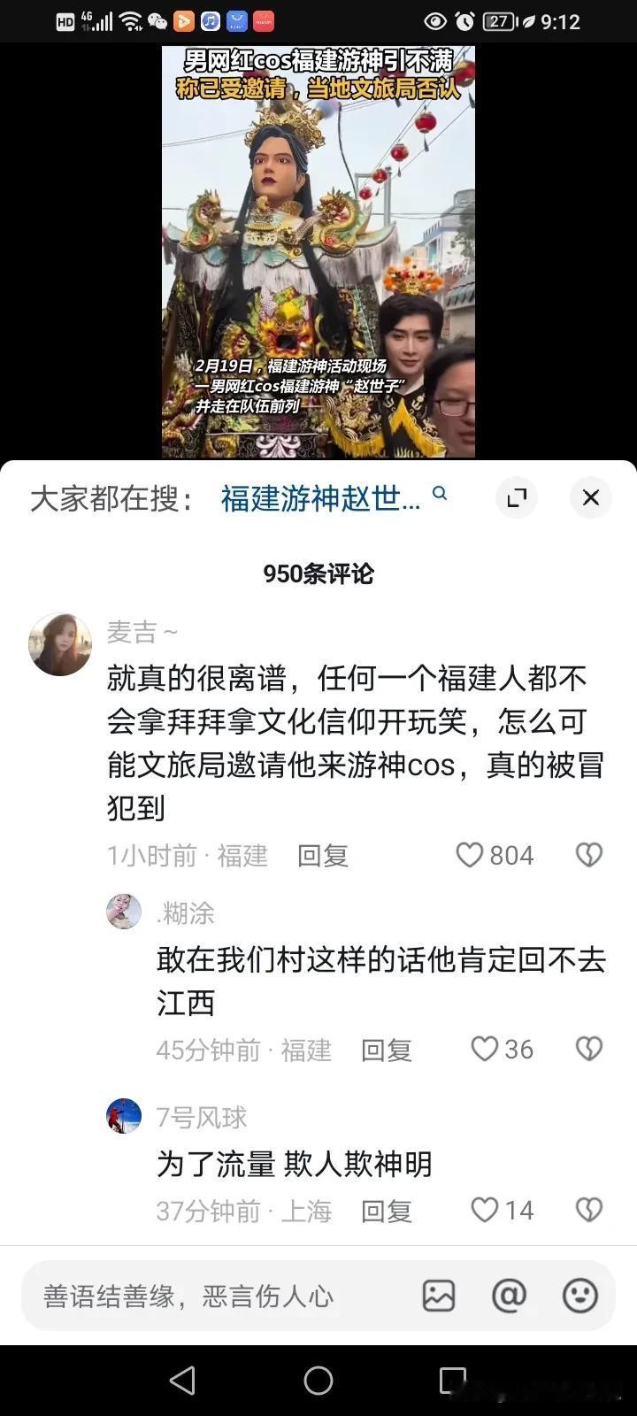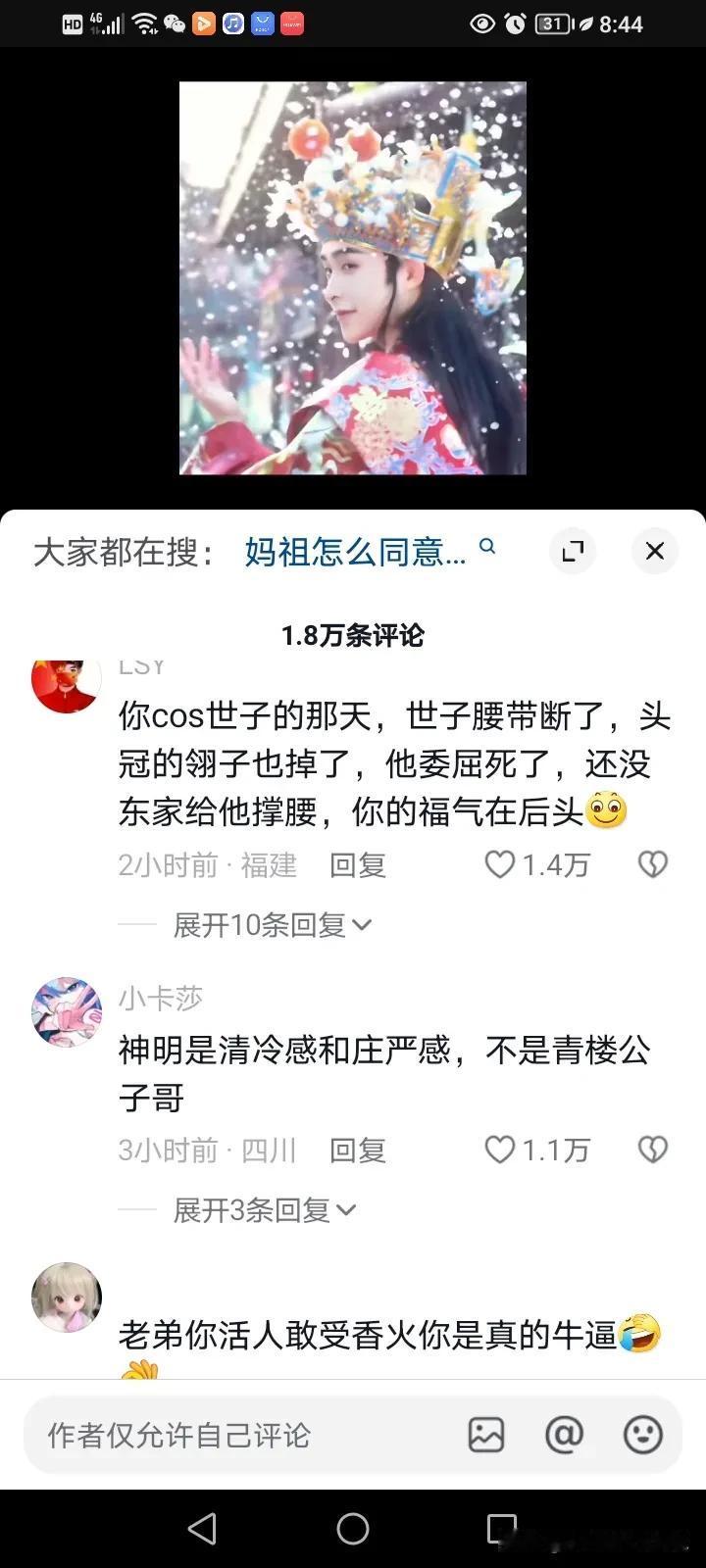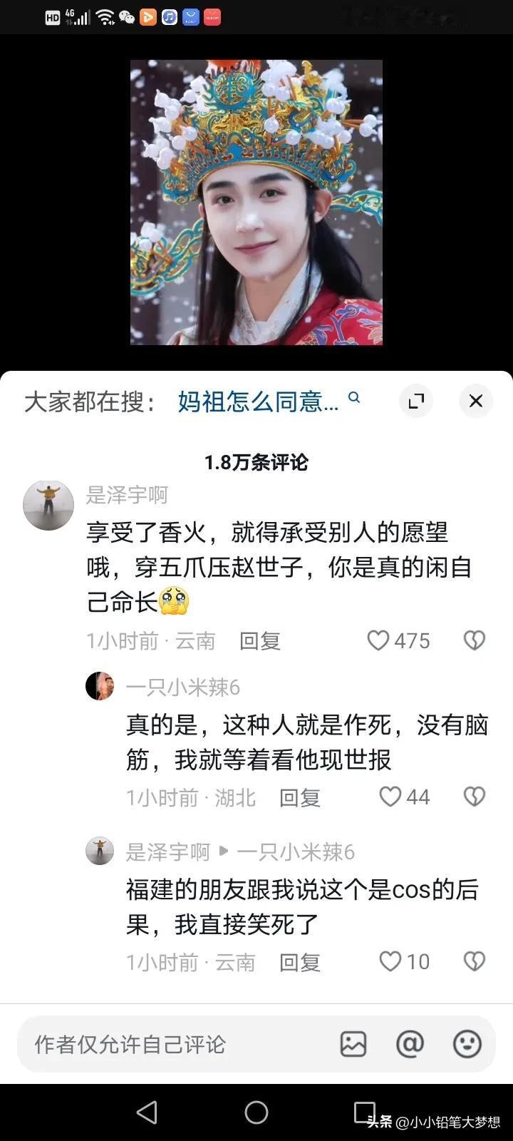 Cos赵世子的网红终于道歉,但是他还是玩了文字游戏,他说已经到了英武庙,求得了神灵的的愿谅,但实际上,视频中的他没有跪下来去扔圣杯,而且只扔了一次,他说自己是联系了两个神游的账号,得到了对方的应允,但实际上是东家:汉服妆 他:直接cos世子,而且服装上的龙压着世子的。 东家:队伍旁边 ,他:最前面! 而且他还说接受了文旅局的邀请,人家文旅局出来澄清,根本就没有邀请什么网红。 现在他的评论区开炸了。 #我来唠家常#