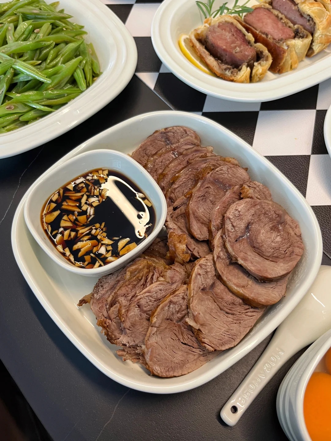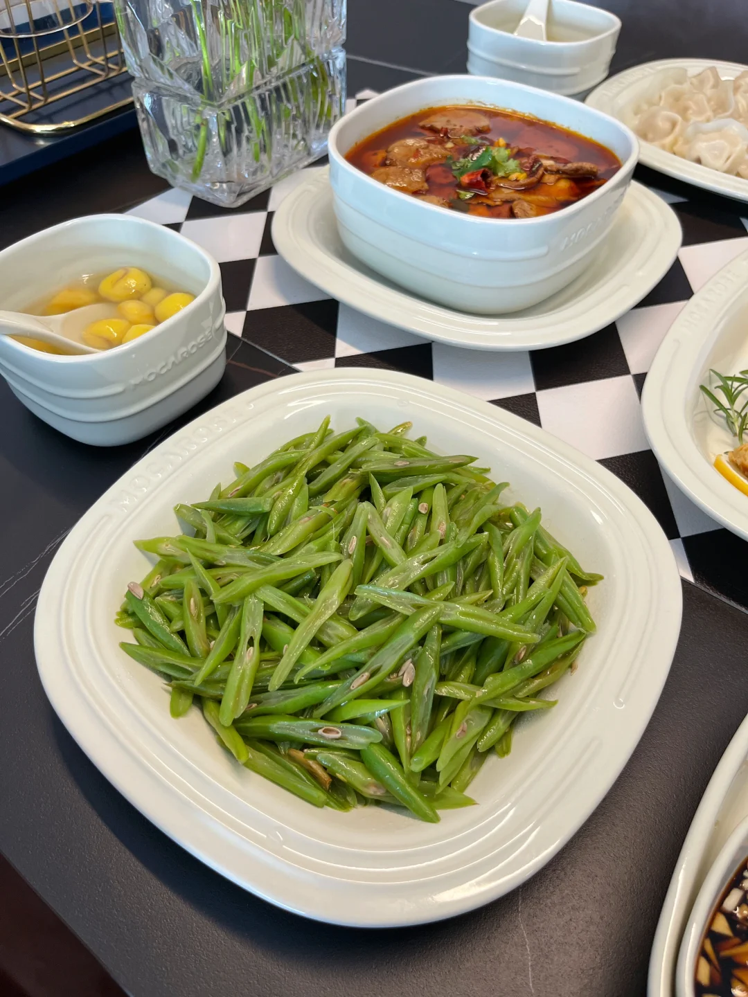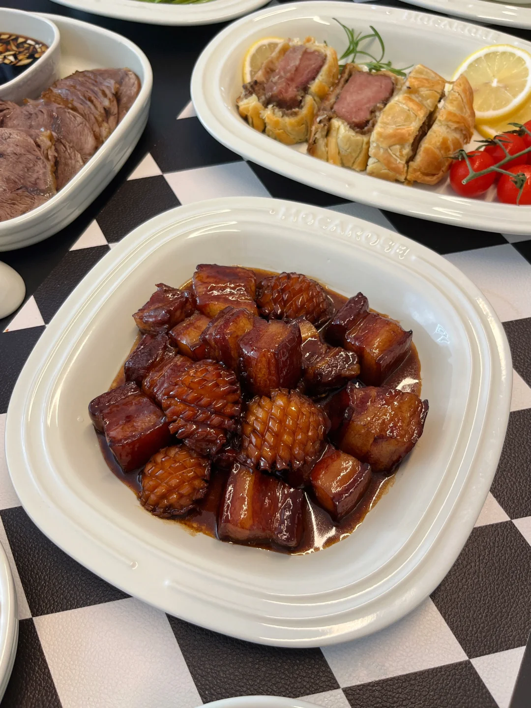 4️⃣餐具位置摆放:硬菜放餐桌中间C位,比如红烧类、海鲜类等其它精美的肉菜,这样更能突显主菜地位。