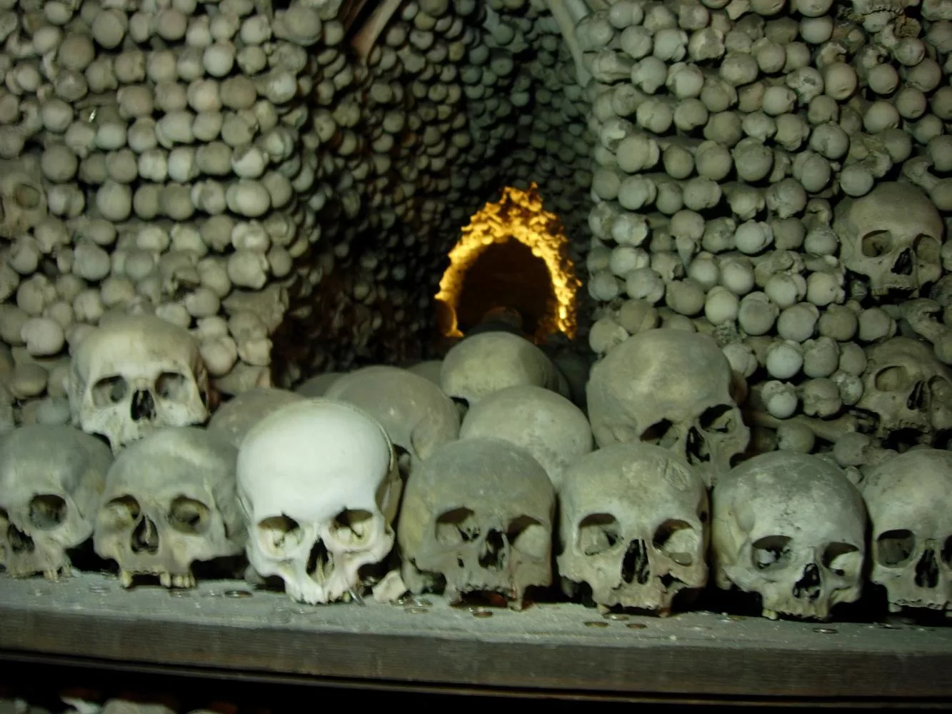 更邪门的是,这里的人文痕迹全反常!先看人口反常:中世纪时,小镇总人口才几千人,可骨教堂里的骸骨却有4.2万具,相当于6个小镇的总人口,这些人到底来自哪里?没人能说清。再看历史反常:13世纪,修道院院长带回圣土,贵族争相埋葬在这里,这本很合理,可15世纪才开始堆积骸骨,中间200年的空白期,没有任何记载,仿佛这200年里,这里被时光静止了。还有语言反常:部分头骨上刻着未知文字,既不是捷克语,也不是中世纪拉丁语,考古学家研究了十几年,至今没破译出一个字!
