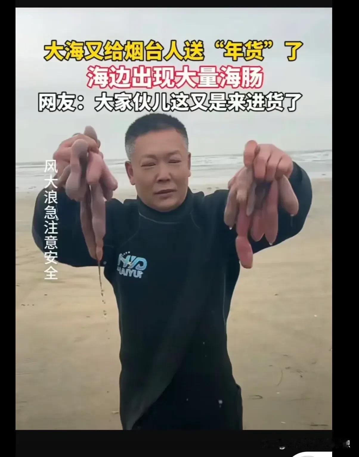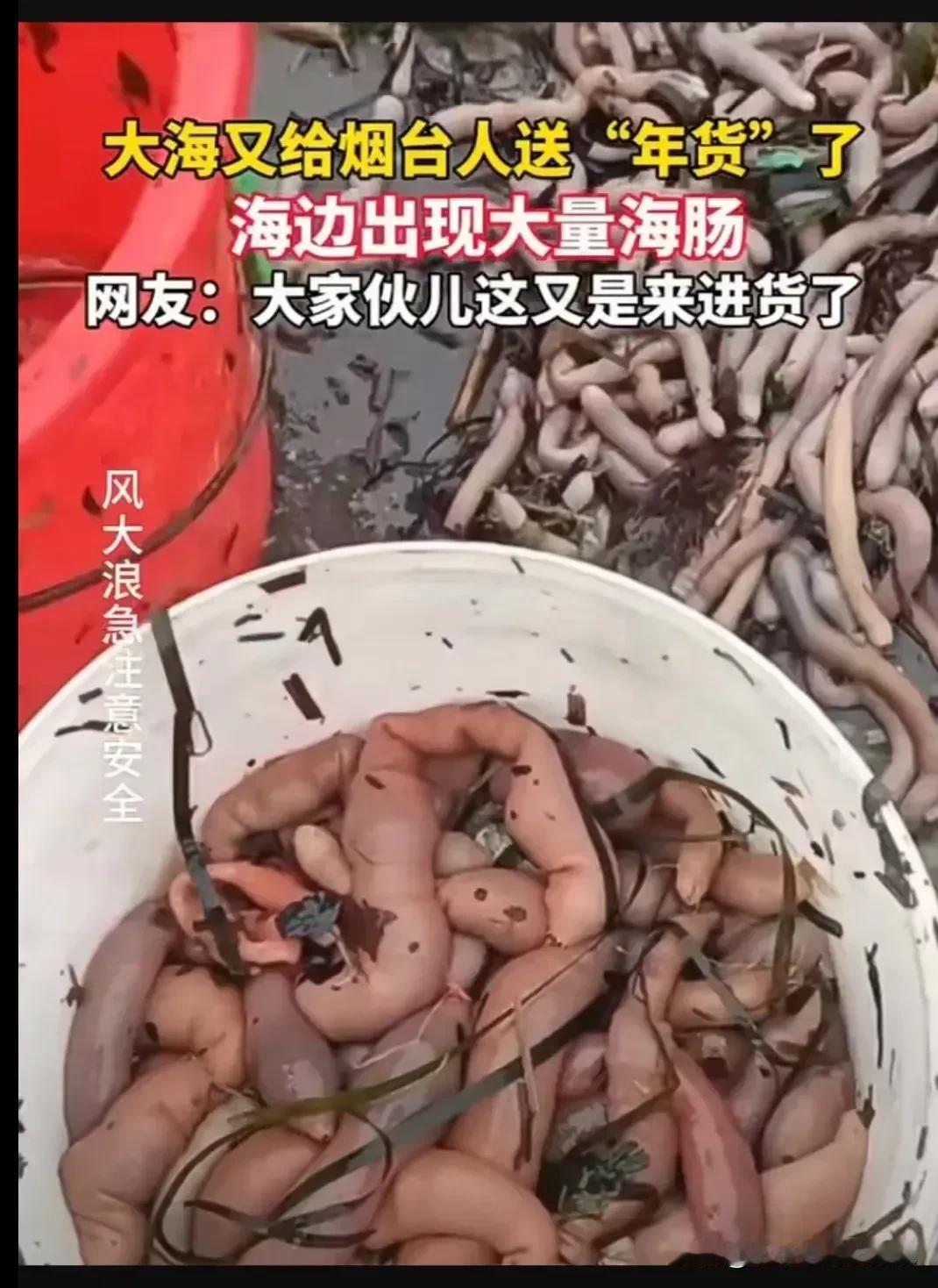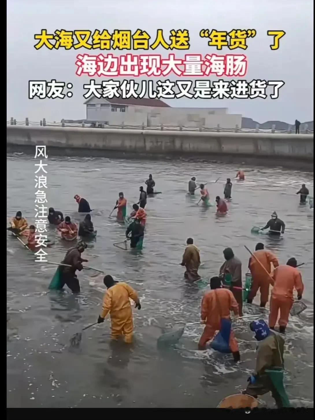 2月22日,地标山东烟台,大海又给烟台人送“年货”来了!这一下出动了大量的“捞海肠大军”,据说这玩意很值钱,一斤60多块钱,一网有二三百斤,一天能捞1000多斤,所以大家都去抢,如果一天能捞1000多斤,那也有六万哦! 这玩意儿很沉的,不要贪多,风大浪大的,就不要去深水区了,但是也得注意安全,如果体力不支,就有溺水的,如果没了,那真的拿生命来换的。 听说已经有六个溺水的,还好,都被救了。还是听话吧,100多个海警都按不住这些想要捞肠的心。[捂脸] #我来唠家常# #记录我的2024#