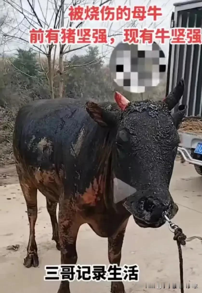 万物皆有灵性,牛经历大火,也在努力活着,这是贵州山火过后的的牛坚强。 本来主人以为它会烧死的, 因为山火实在太大, 根本就没办法施救, 被烧成这样, 它应该也很疼吧, 没想到这么大的火, 它坚强的活下来了, 还找到了回家的路…… #我来唠家常# #天南地北大拜年#