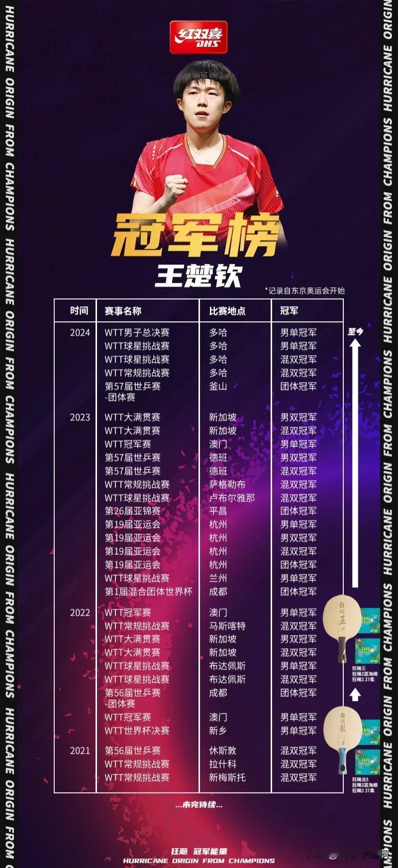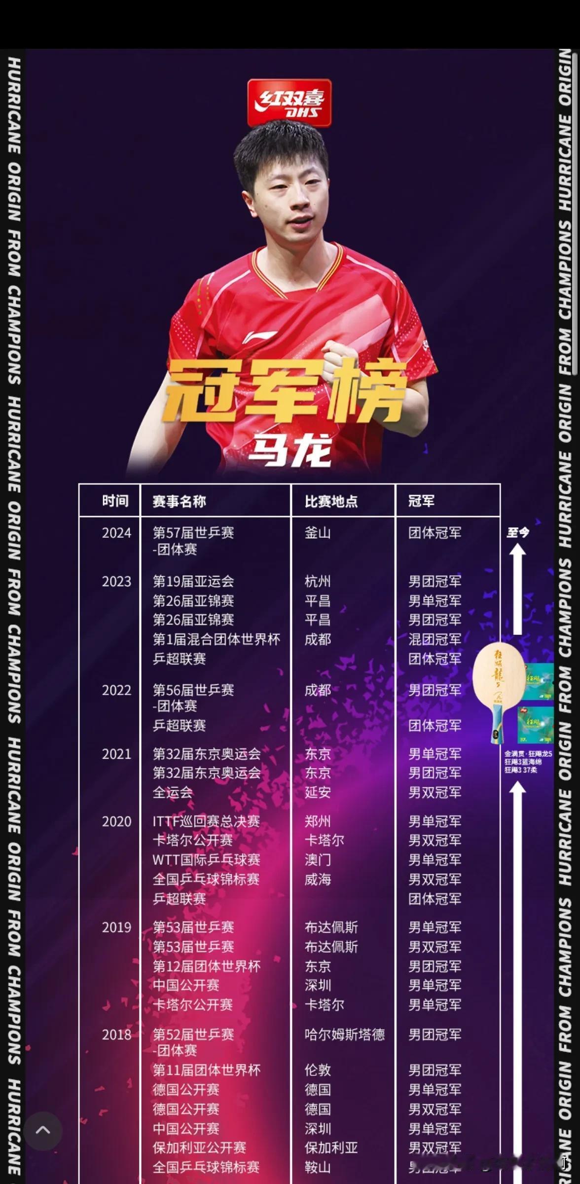 马龙、孙颖莎、王楚钦冠军榜更新,三龙问鼎,冠军数+1 #国乒真是太强了#