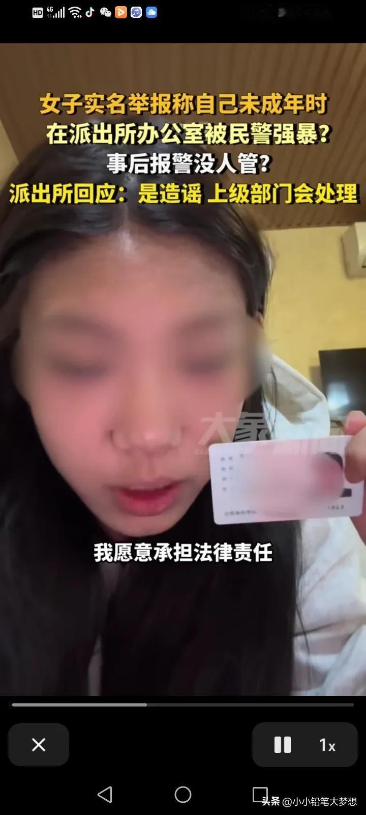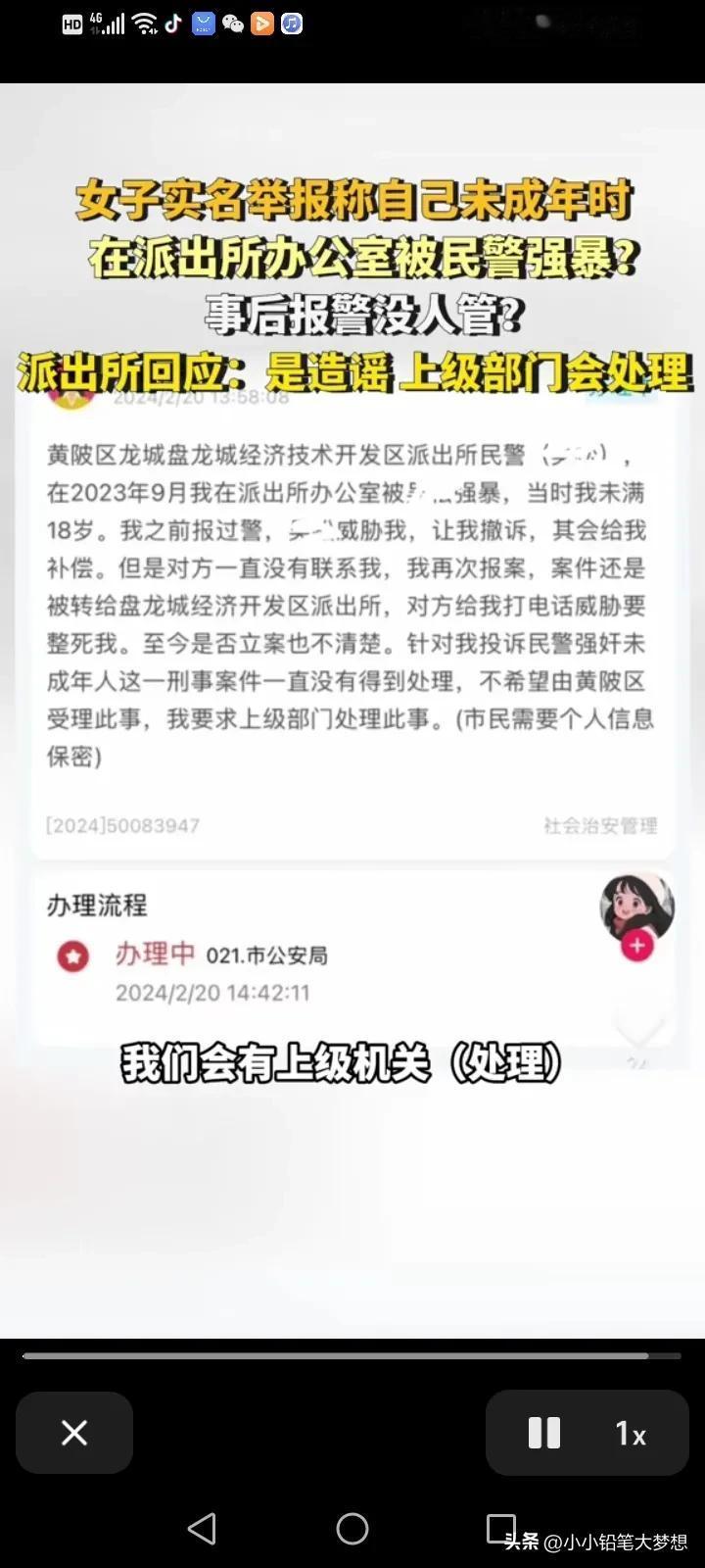 闹大了,一名女子拿着身份证实名举报,称自己未成年的时候在民警派出所被一名民警强奸,她还说事后自己报过警但无人理会,派出所回应:“是造谣的。” 一名年轻的女子拿着身份证举报称,湖北省武汉市黄陂区,盘龙城经济开发区派出所的吴某,强奸未成年少女,还受贿打人,她说自己所说的一切都是属实,如果有编造诬陷的话,会接受法律的处罚。 她说通过网络曝光,真的是迫不得已,事后就报过警,一直没人管,她只想这个事情有人受理,事情发生在2023年的9月份,当时她还没满18岁,派出所的吴警官当时在派出所就强奸了她,她报过警,但是这个吴警官就威胁她。 然后让她撤诉,说会给她补偿,但是后来却没有联系她了,所以她再一次选择报警,但是这次还是转回了这个公安局处理,对方就给她打电话说要整死她。 至今这个案子是否立案她并不清楚,她现在唯一的要求就是不能让这家派出所处理这个案件,要求由上级来处理。 而相关的记者也打电话到这家派出所询问是否有此事,现在这个民警是否还在岗位上? 派出所工作人员回应:在岗位上的,这事是造谣的,我们会有上级会处理。 我这里有几个疑点,2023年9月,离现在也不算太久的时间,既然在派出所发生这样的事情,当时没有监控吗?这监控会覆盖吗? 这女孩会不会诬告?我觉得排除精神有问题的话,诬告的可能性很少,因为我觉得一个女孩不可能拿自己的清白开玩笑,她这么做有什么好处呢?把自己曝光出来以后,还怎么生活? 现在是不是诬告,只能出示证据了?问题这女孩手上还有证据吗? 希望相关部门彻查,不要冤枉一个好人,也不要放过一个坏人! #我来唠家常# #记录我的2024#