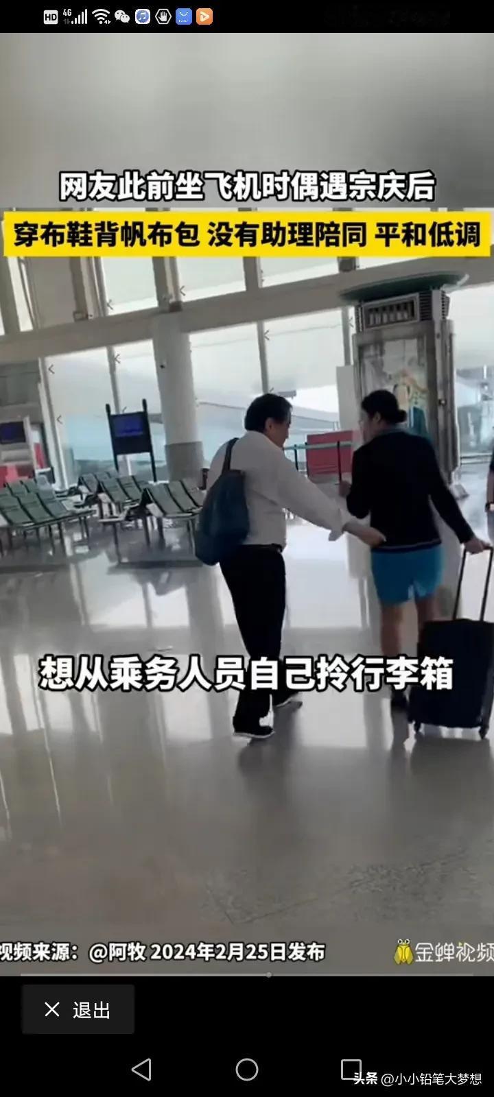 今天才刷到这个视频,宗庆后一个身家几百亿的老总啊,出远门居然只穿一对布鞋,挎着一个帆布包,没有保镖,没有助理,连那个手提箱他都想从空姐手上接过来。 而且他之前一直都是坐经济舱,因为身体出现了心血管问题,所以后来出门才改坐了商务舱。 是什么强大的内心能让他如此沉淀,不飘,不为金钱财富所困,这是常人难以企及的境界。 事实证明,中国人不仇视富豪,只要这个富豪,他的金钱来的是正路。 老爷子朴素低调,品德高尚,一路走好! #我来唠家常# #记录我的2024#