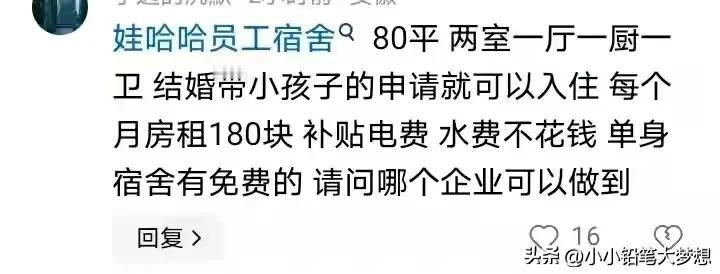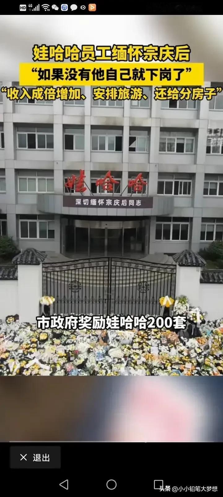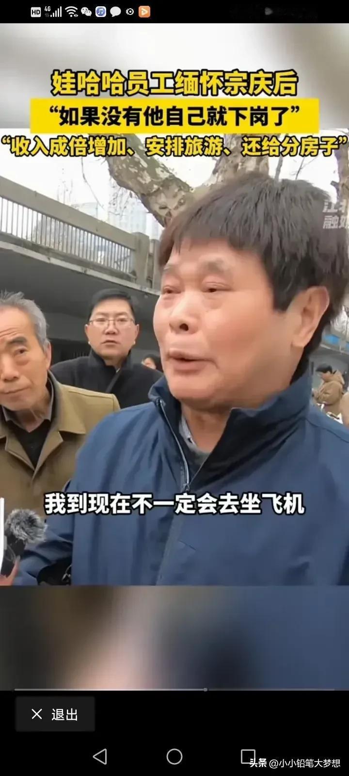 一位娃哈哈的员工过来缅怀宗庆后,他说宗老真的是大好人,如果没有他,自己就下岗了,更不可能有双倍的收,也不可能分到房,他原来是棉花厂的工人,然后被调到罐头厂,他到了罐头厂才三个月,亏本的罐头厂被娃哈哈兼并,他也顺理成章成为了娃哈哈的员工。 他们在娃哈哈的十多年被宗老搞得红红火火,收入也是双倍,双倍的增加,他说如果不是宗老,他早就失业了,更不可能拿到双倍的工资,还有机会坐飞机去旅游,如果不是宗老给他这个机会,他可能这一辈子都不可能去坐飞机的。 政府奖励的娃哈哈200套的经济适用房,中老毫不犹豫的就把这些房子分给了他们的员工,他分到了70平方的房子,在那个年代,能有70平方的房子,那真的是牛的不得了! 他说他非常非常非常感恩宗老! 其实宗老在很多地方为自己的员工建造了房子,而且还是在繁华的地段,在去世前,他还在上城区花了9.42亿,动工兴建人才公寓,一共1364套的两居一厅。 他说,现在的员工经济压力大,外面的房子太贵了,买不起也租不起,他说现在的人没有房子就结不起婚,他干脆就直接免水费,补贴电费,让他们住着没有后顾之忧,如果每天他们都担负着房贷,那还能好好工作吗? 一位工人说,娃哈哈的房子,80平米,二房一厨一厅一卫,只要结了婚领着孩子就可以入住,每个月只收180块钱,水是免费的,电可以补贴,单身宿舍还全免费,试问还有哪个老板能做到? 中国现在不缺商人,缺的是这些良心企业家!看到这么多人来缅怀终老,其实每个人心中都有一把秤,这个企业家他好不好,看老百姓的反应就知道! 宗老一路走好。 #我来唠家常# #记录我的2024#
