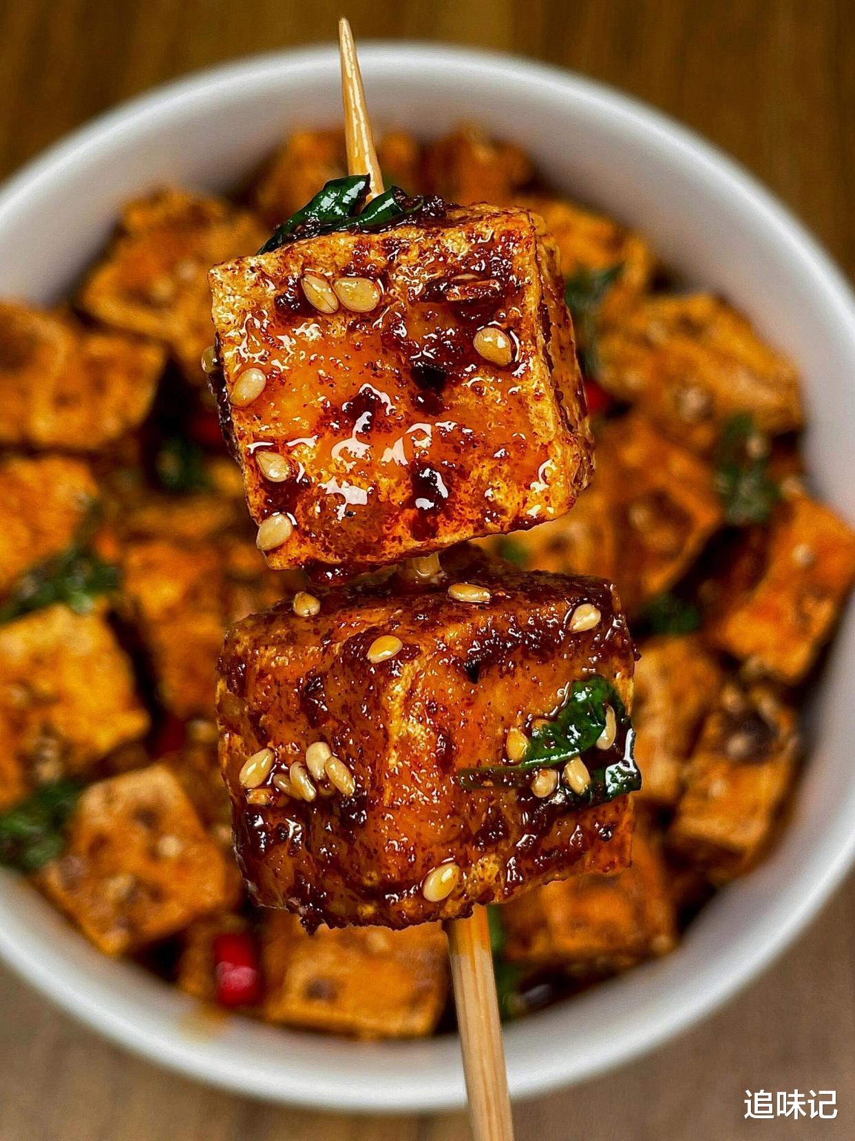 豆腐外皮炸得金黄酥脆,内里却嫩得像豆腐脑。香菜和小米辣的点缀让味道更丰富,酸辣的酱汁渗透到豆腐里,孜然粉的香气扑鼻而来,咬一口满嘴留香。