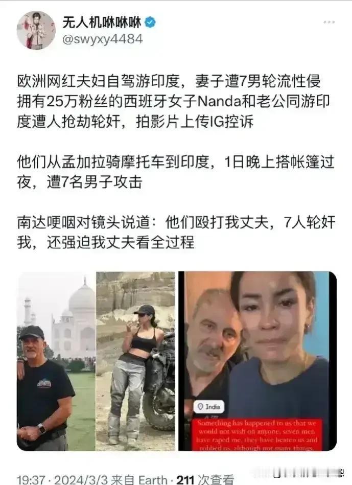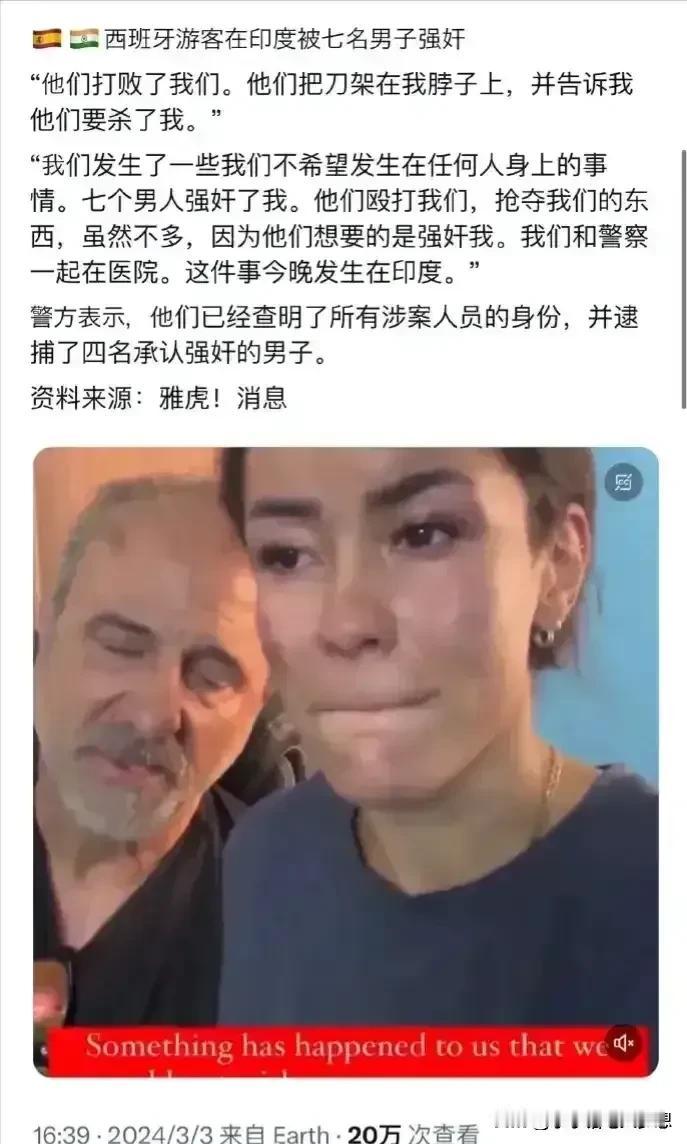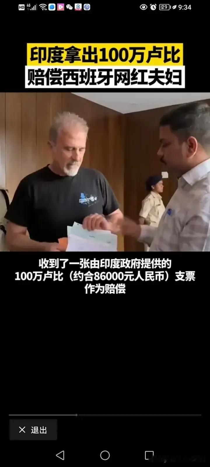 以为是印度最大的丑闻,现在是西班牙最大的丑闻,一件事被恶心了两次,西班牙网红夫妇在收到了印尼政府给他的11000欧元赔偿后改口:“大家不要对印度有看法,它是值得一去的伟大国家!” 7个人玩,还有观众家属陪同观看,然后在网上哭诉,领到钱之后,马上就改变了看法,钱这东西真神奇![捂脸]
