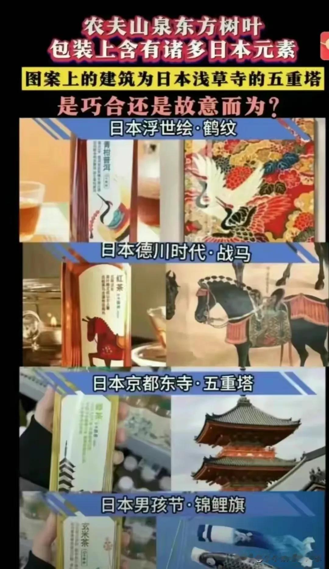 其实真的不用搞什么阴谋论,农夫山泉回应产品东方树叶包装设计了,“绿茶产品标签上的建筑图案是根据中国寺庙建筑形象所做的艺术创作。”他们回复宣扬的是中国茶文化,是展示中国茶及茶文化对世界的影响,更展示了民族自信。 对于网络上有一些图片或许真的有一点生拉硬扯,我不搞什么阴谋论,但我始终相信,但凡一个懂国情,爱国的商人都不会去搞一些擦边球的事情,更甚至不会设计类以日本风情作为品牌要素,但凡一个爱国的商人更加不会将家人的国籍转移到国外,特别是美国!目前钟老板全做到了! 所以我还是相信我自己的第一感觉,我支持爱国商人,宗老板。