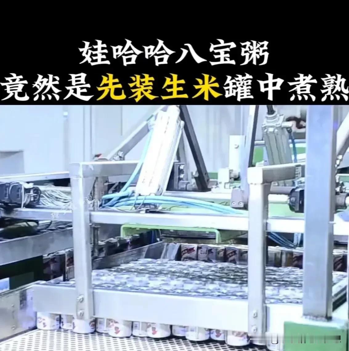 这个厉害,一直以为所有的八宝粥是煮好放进去的,原来不是,以前一直在想,为什么不是铝罐,而是铁罐装,现在终于明白,原来罐头八宝粥都先定量加速各种材料和水,然后封罐,然后再一炉一炉的送进高压仓蒸煮,因为内外压力一样,所以不会因为加热而炸开!