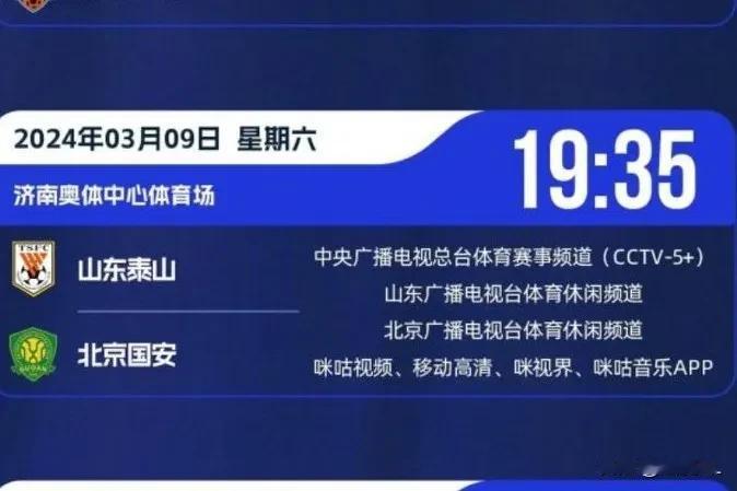 中超第二轮焦点之战,泰山对阵国安重要提示: 第一,本场比赛引发国内广泛关注,央视体育5+频道领衔多平台进行直播。 第二,泰山旧将方昊另类出镜,染绿发向国安表忠心,赛后再来泰山球迷区谢场还会引发国安球迷不满吗? 第三,看崔康熙如何轮换阵容,既能主场取胜,又能为亚冠次回合决战保存体能和保持状态。 第四、国足新帅伊万科维奇继亚冠之后,将继续莅临奥体中心观看本场有多名国脚对决的比赛。