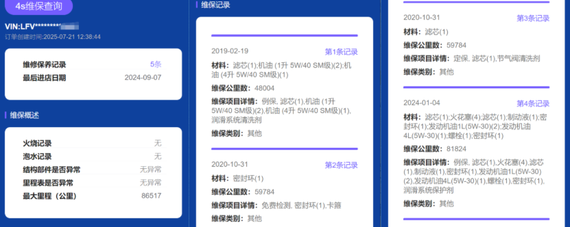 2.第三方平台查询(最全面)覆盖修理厂、保险关联维修,补全4S店查不到的场外维修。