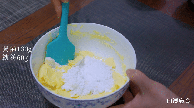 4.黄油与糖粉先混合一下无干粉状态再打发,避免糖粉飞溅出来。