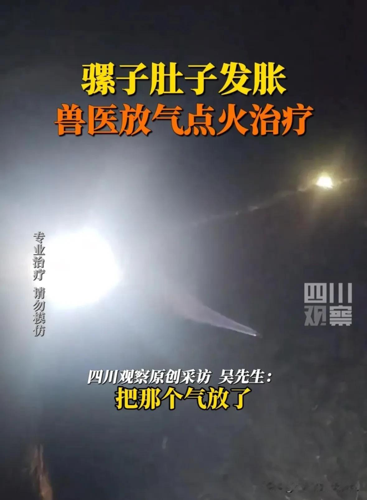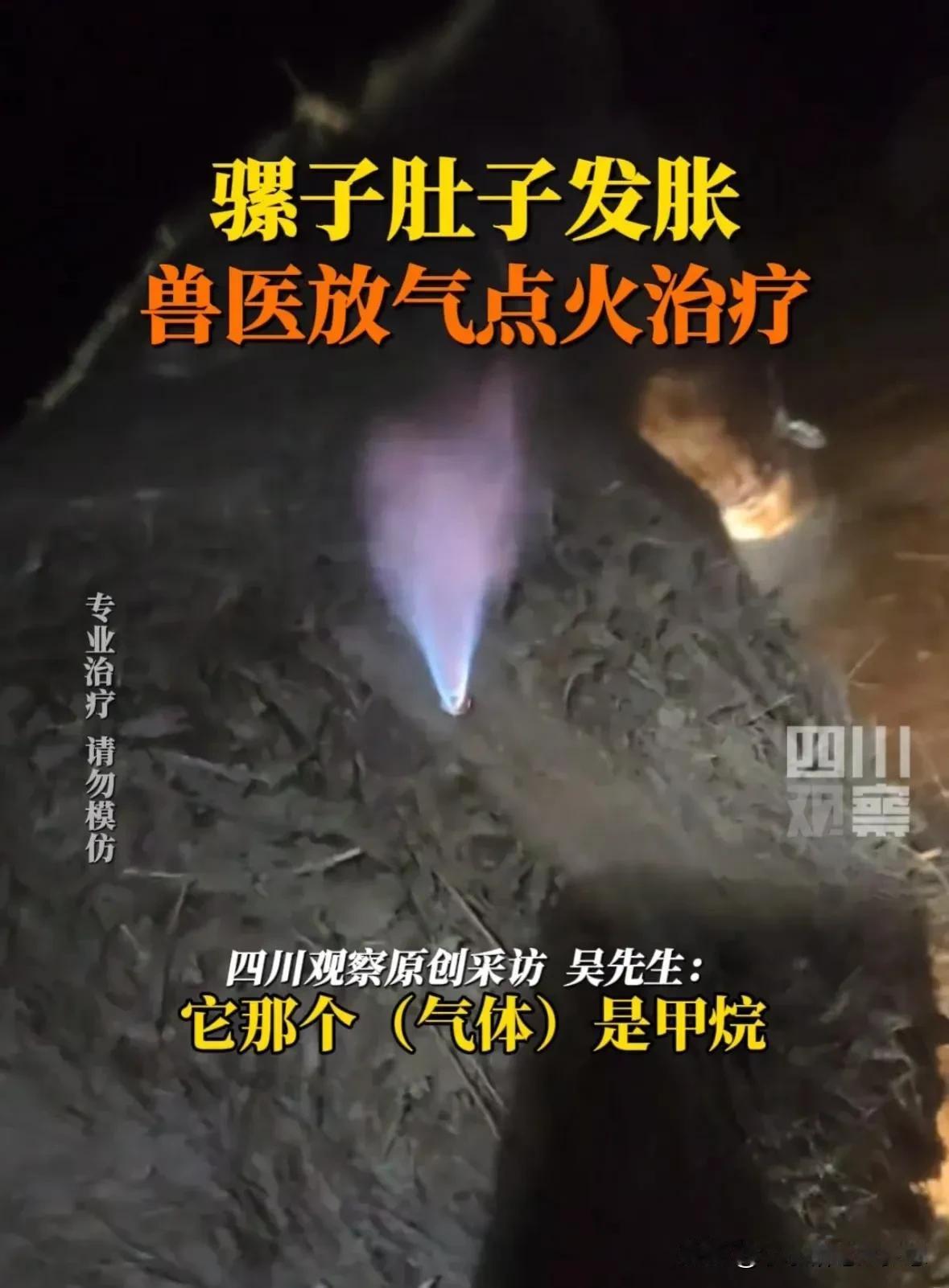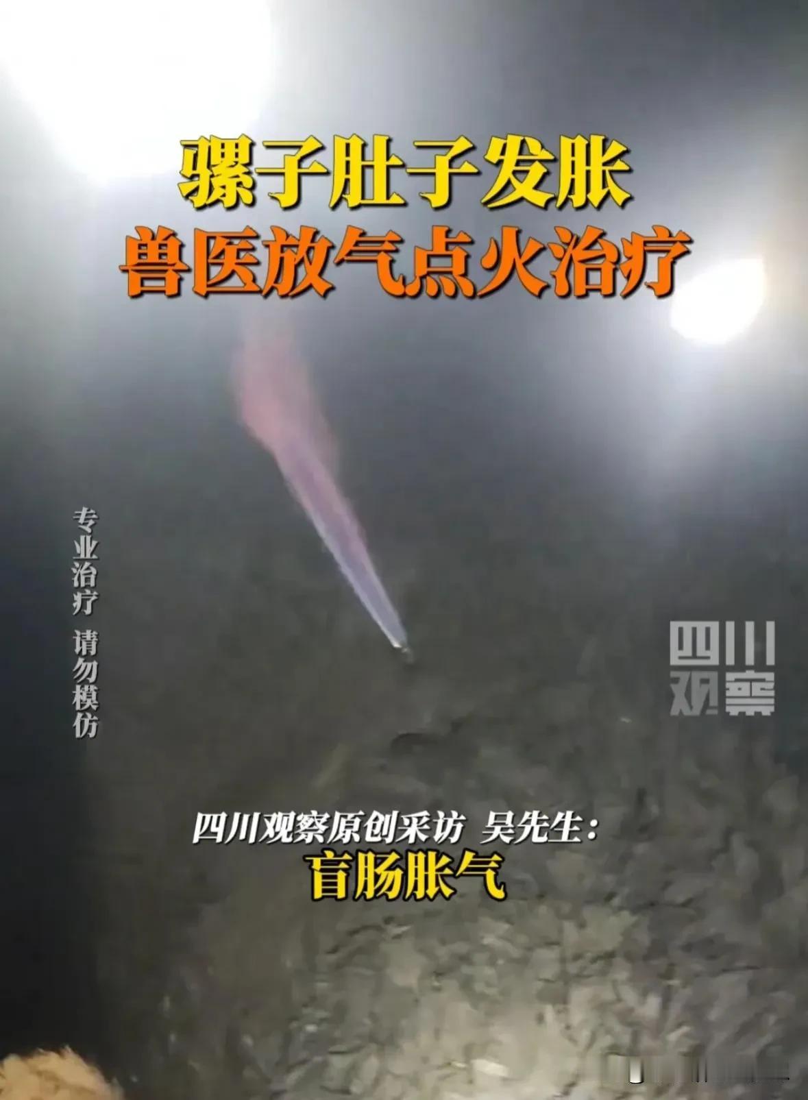 3月9日,湖北恩施,兽医放气点火治疗骡子肚胀,兽医称,这是盲肠胀气,喷出的气体是甲烷,是专业治疗,我终于知道为什么红孩儿会喷火了,因为他是牛犊子[大笑]。 #春日生活打卡季# #我来唠家常#