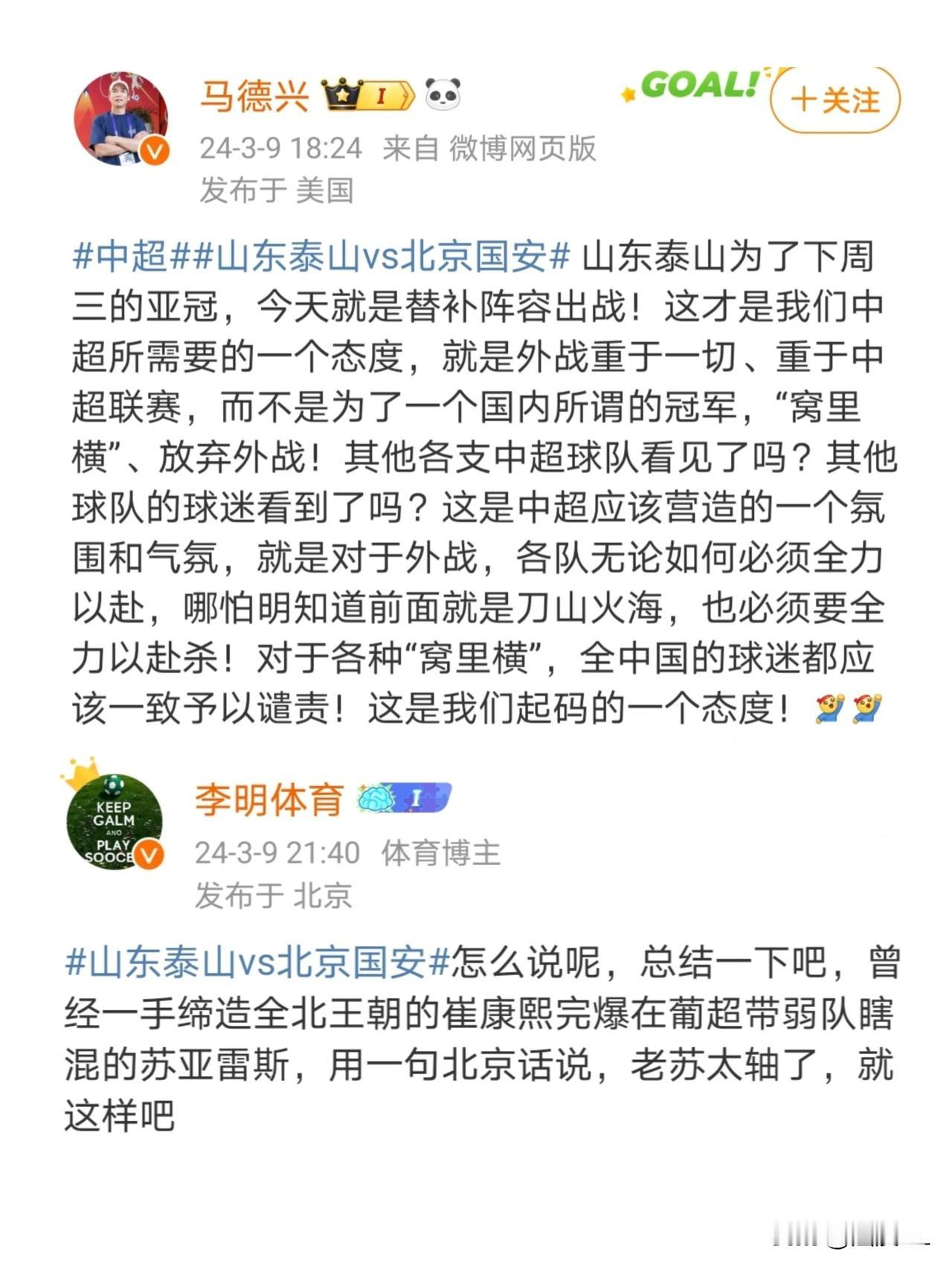 言过其实?一场在48000多名现场球迷见证下的闷平,泰山队和崔康熙却收获了媒体人的盛赞。 马德兴直言泰山队留力亚冠,替补阵容出战中超就是中超需要的一种态度,对于“窝里横”全国球迷都应该予以谴责。 博主李明体育更是表示泰山队主帅崔康熙完爆国安苏亚雷斯。
