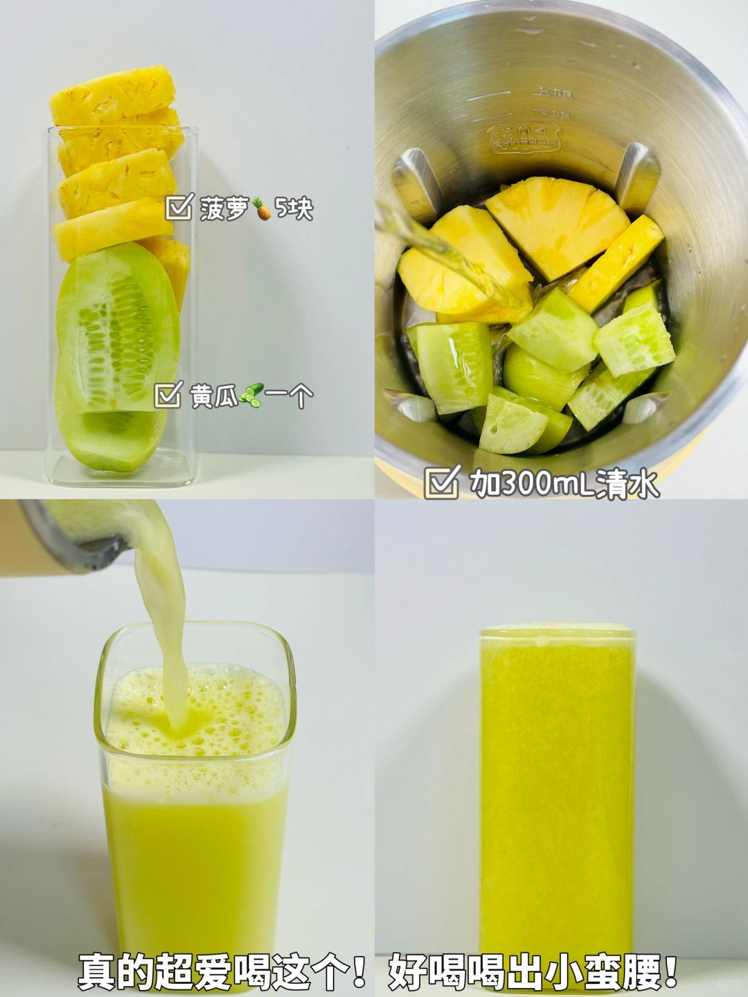 5️⃣黄瓜🥒一个➕菠萝🍍5块➕300mL清水(喝出小蛮腰)