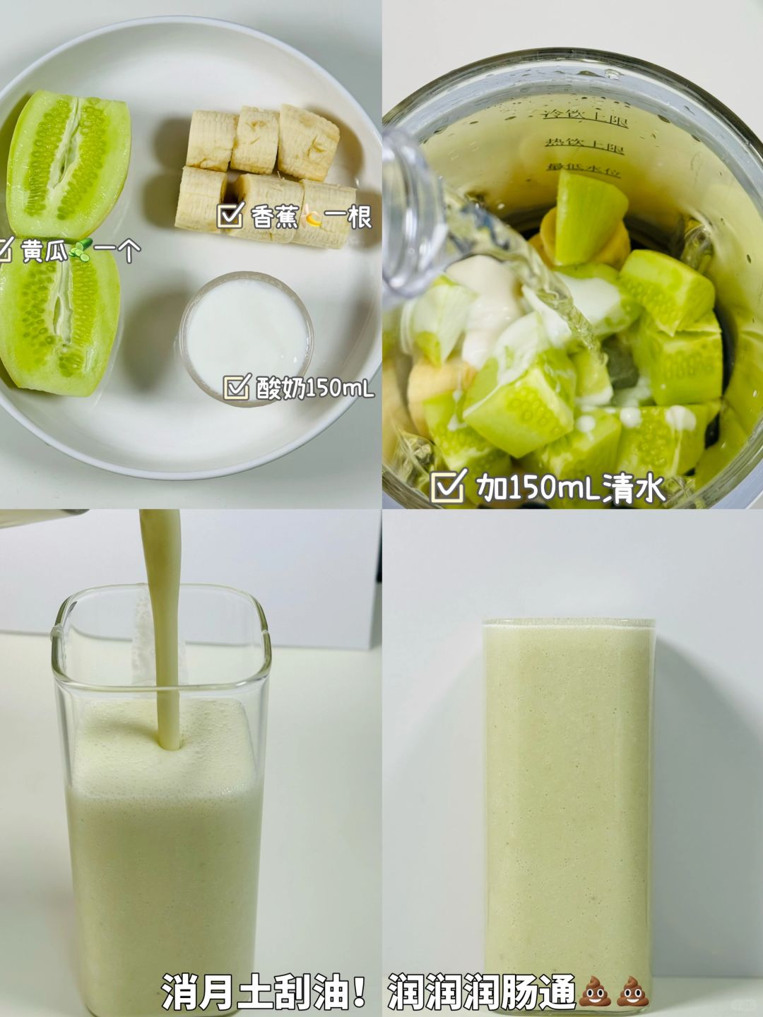 3️⃣黄瓜🥒一个➕香蕉🍌一根➕150mL酸奶➕150mL清水(消由刮月土,润肠通💩)