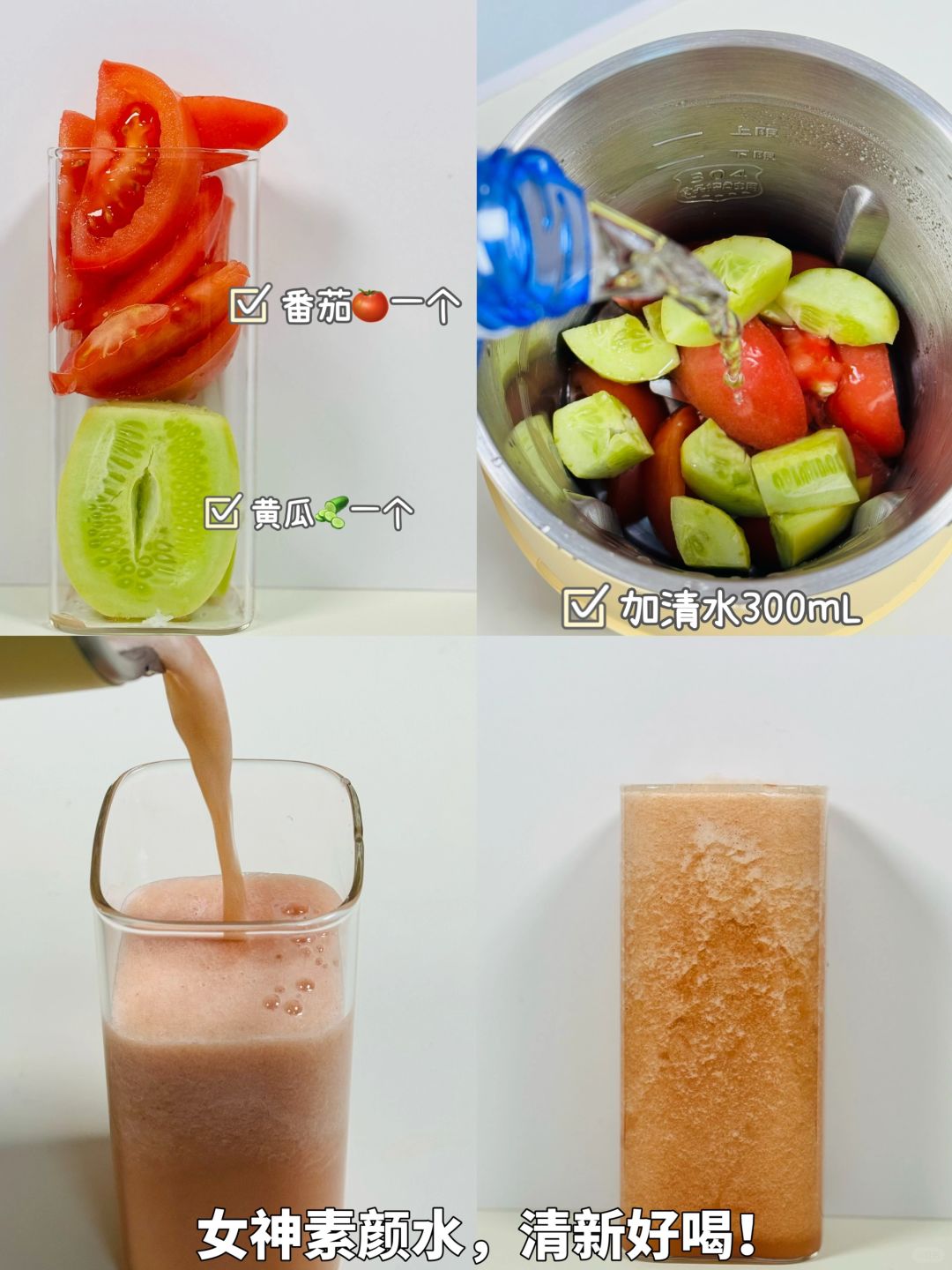 2️⃣黄瓜🥒一个➕西红柿🍅一个➕300mL清水(女神素颜水)