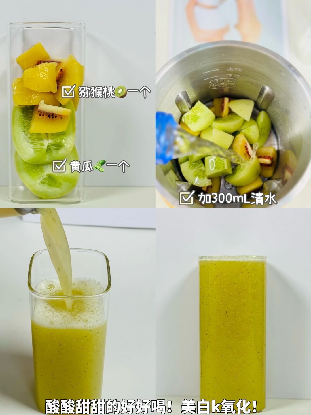 4️⃣黄瓜🥒一个➕猕猴桃🥝一个➕300mL清水(酸酸甜甜真的好喝,美白k养化)