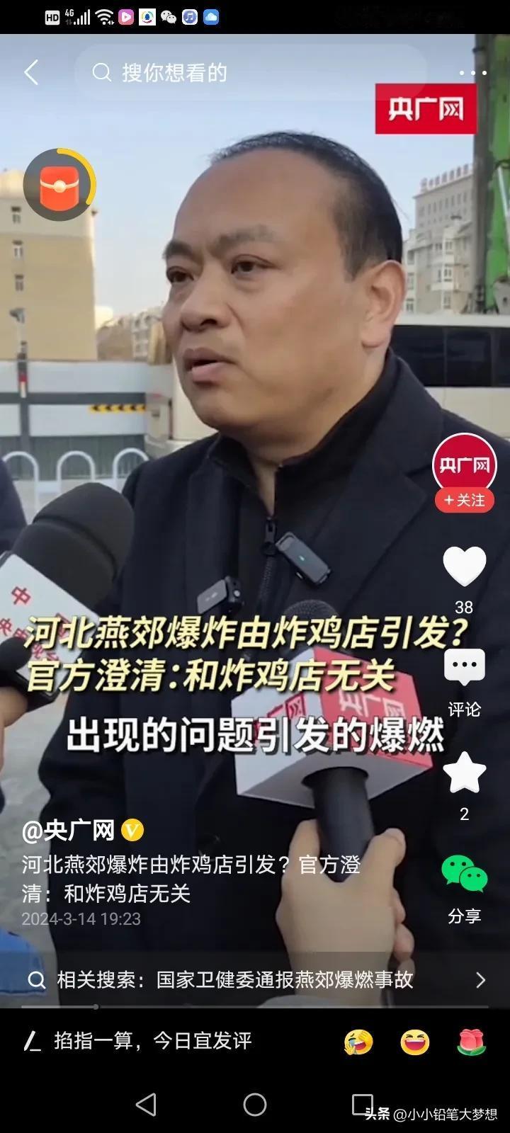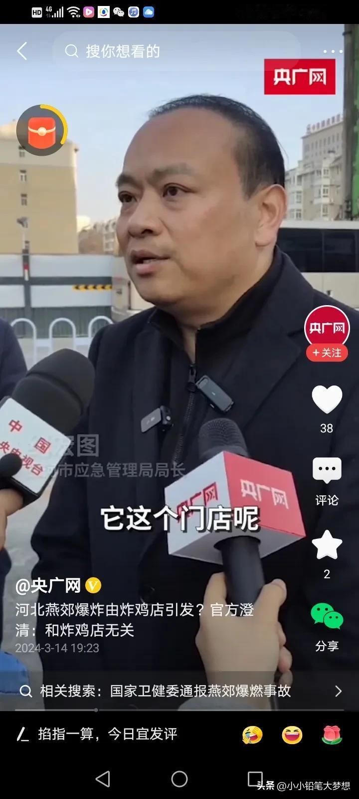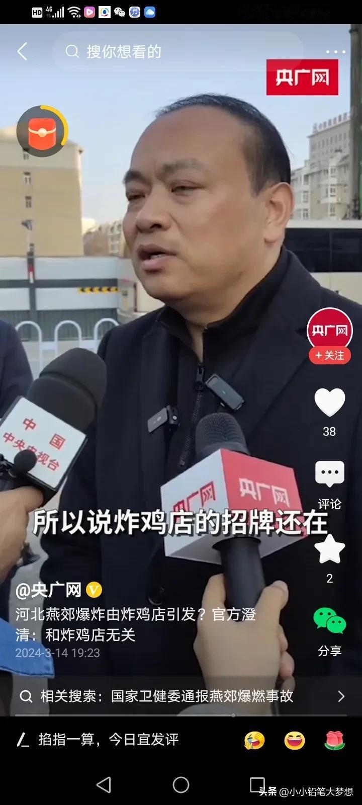 官方媒体当时报道是炸鸡店内爆炸,为什么这么说呢?终于有人出来解释了!这个接受采访的是应急管理局的局长,他说现在具体是哪家门店是爆炸点,还不确认,因为这栋楼下面有四个门店,四个门店都是连着的,当时这是四个门店的招牌全部给炸没了,根本就不知道坐标,而旁边刚好有一家炸鸡店,炸鸡店的招牌还在,所以当时就以这个坐标来报道,所以造成了这样的误会,实际上是与炸鸡店无关的! 炸鸡店真是冤哦,急得这个老板一直在网上澄清,不是自己家的店爆炸,他们不背这个锅,他们当时还没有开门,而且他们也不用燃气,他们家是用电的。 这样报道确实有点不严谨啊……误导了好多人,一传百,百传万,所以就造成了这样的误会。
