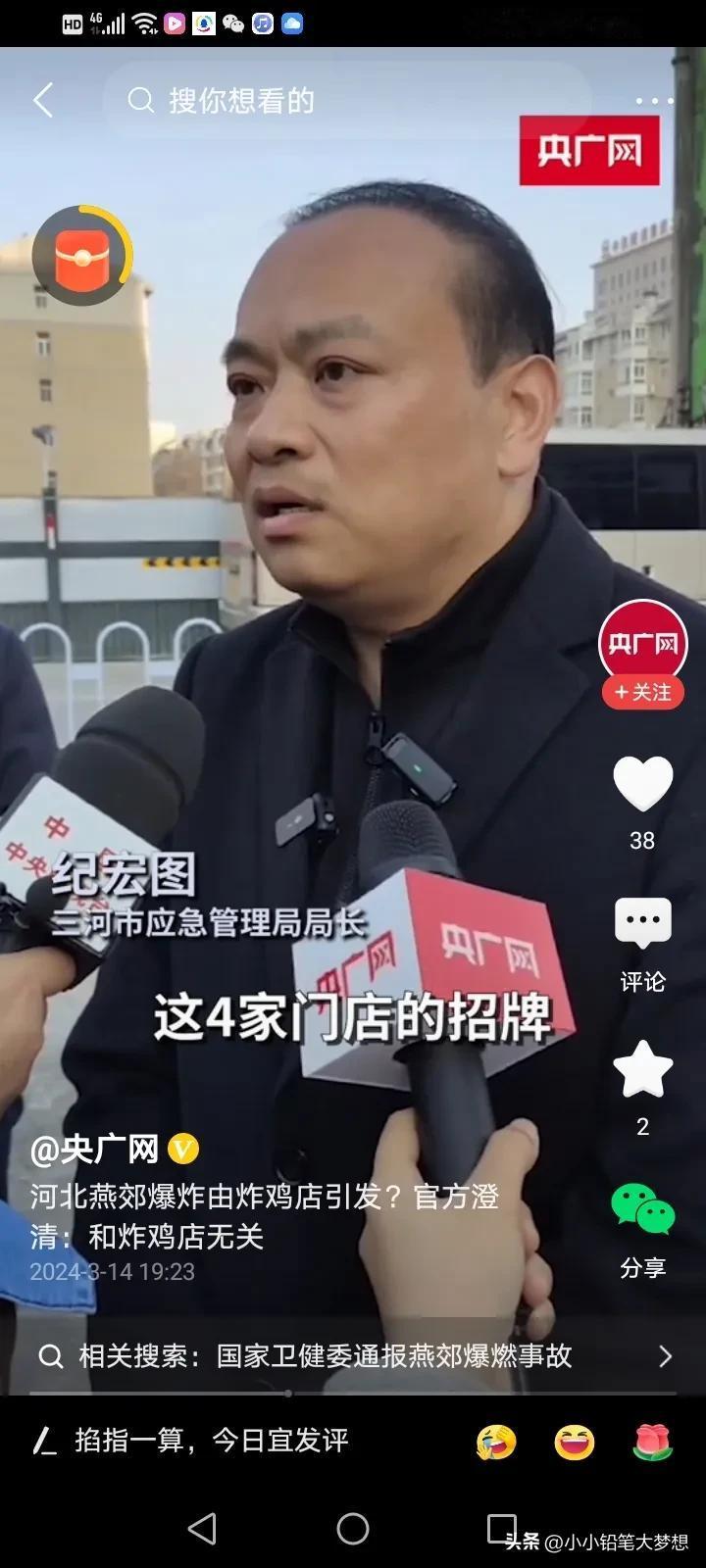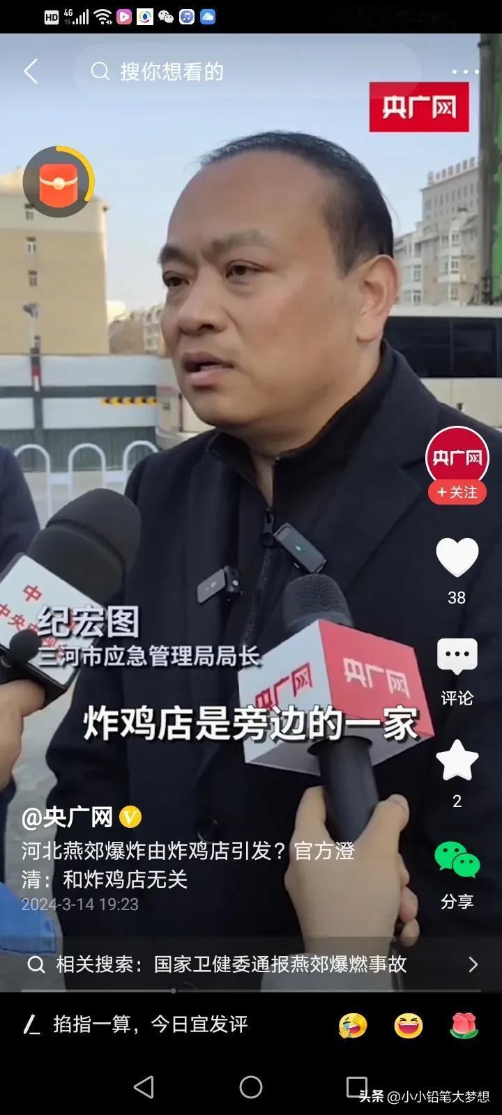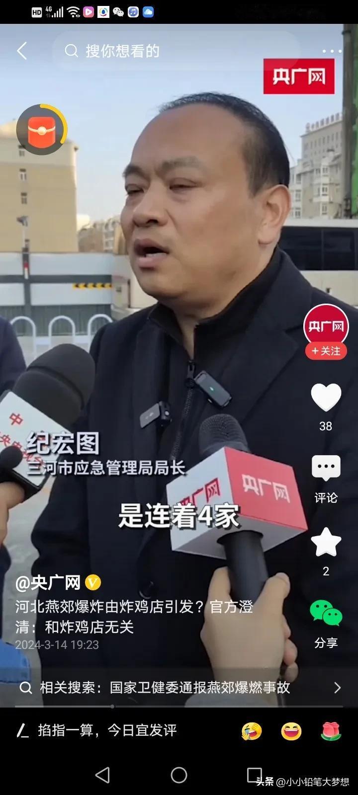 官方媒体当时报道是炸鸡店内爆炸,为什么这么说呢?终于有人出来解释了!这个接受采访的是应急管理局的局长,他说现在具体是哪家门店是爆炸点,还不确认,因为这栋楼下面有四个门店,四个门店都是连着的,当时这是四个门店的招牌全部给炸没了,根本就不知道坐标,而旁边刚好有一家炸鸡店,炸鸡店的招牌还在,所以当时就以这个坐标来报道,所以造成了这样的误会,实际上是与炸鸡店无关的! 炸鸡店真是冤哦,急得这个老板一直在网上澄清,不是自己家的店爆炸,他们不背这个锅,他们当时还没有开门,而且他们也不用燃气,他们家是用电的。 这样报道确实有点不严谨啊……误导了好多人,一传百,百传万,所以就造成了这样的误会。