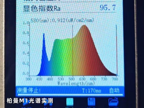 柏曼M1的显色指数 Ra为95.7,达到了高端护眼灯的优良线。它的饱和蓝色指数 R12超过90,但饱和红色指数 R9则略低于90,色容差SDCM为3.62。整体色彩还原能力可靠,能够满足日常学习与阅读的色彩真实性需求。