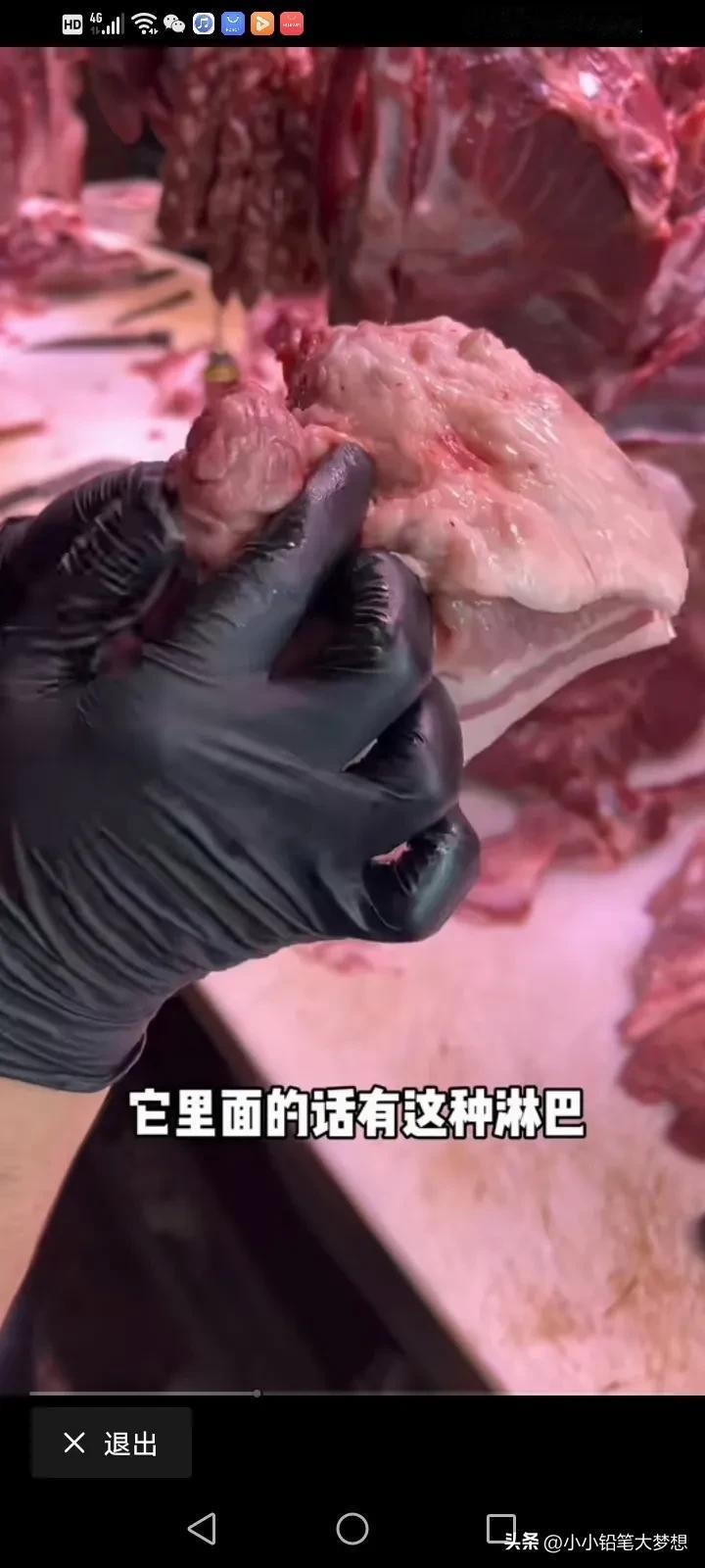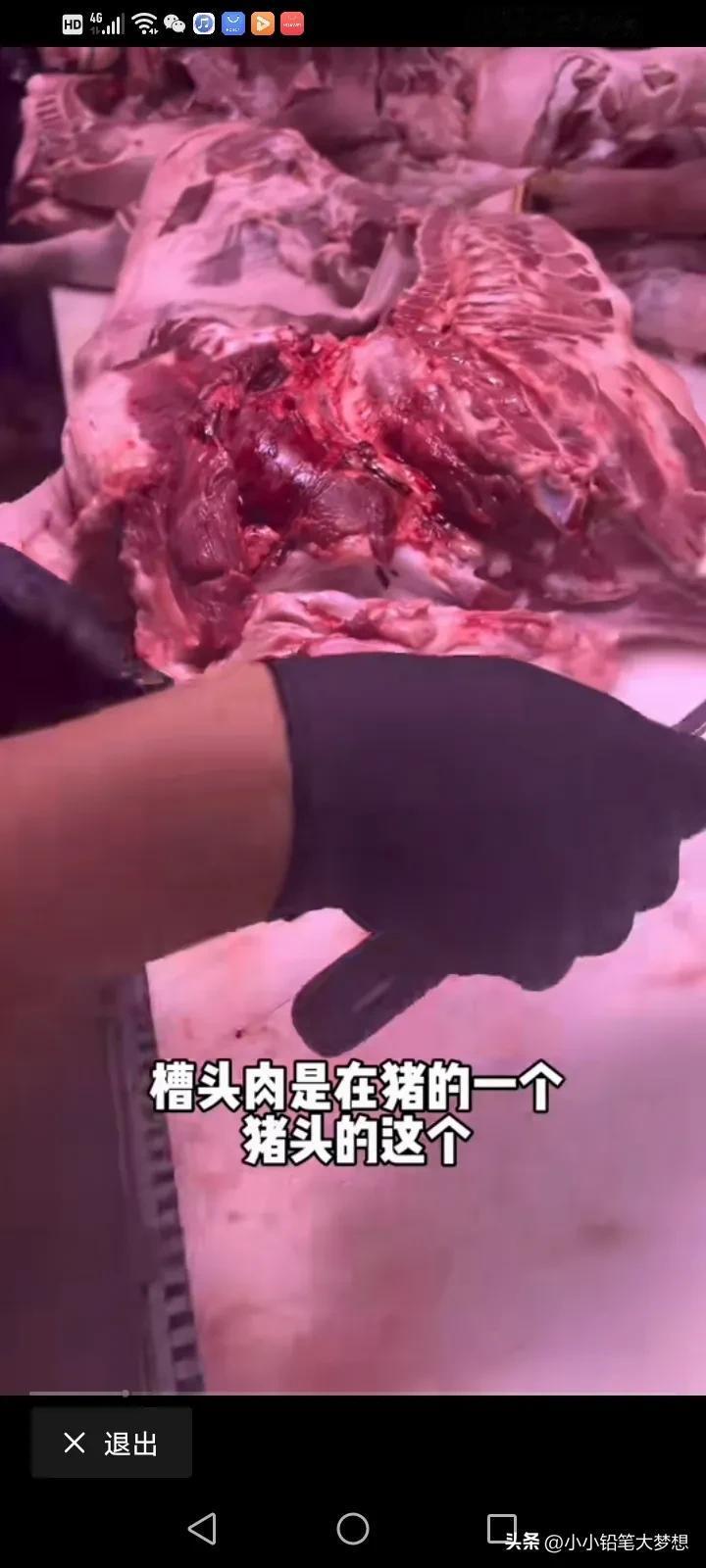 这就是槽头肉,呈三角形的,那一坨一坨的全都是淋巴,而且把它切下来,真的很像一块五花肉,但实际上下面那一坨坨全都是淋巴,所以说为什么梅菜扣肉的那些工厂不修掉?因为修掉了,确实没有起层的效果了![捂脸] #春日生活打卡季#