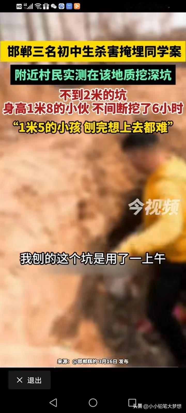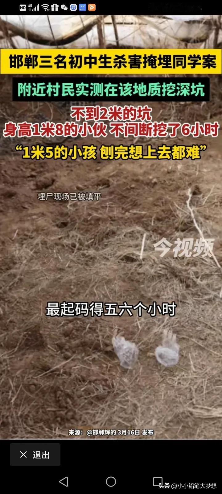 初中生被杀案这事应该不简单!孩子的尸检结束了,孩子爸爸说比想象中还要残忍,被害的父亲带着律师团队到事发地亲测挖土,大人都挖不动小孩是怎么做到?这个不是无中生有,疑点确实很多。 之前这位父亲就已经发文,说村支书当天晚上凌晨两点多的时候带着警察去敲嫌疑人的门,但是敲了两个多小时,对方都没有开门,理由就是“怕吓着孩子!” 什么问题都没有说,就说怕吓着孩子!这种拒不不开门的情况是不是很反常啊?而且当时孩子只是失踪而已啊,并没有说已经遇害啊!这是不是做贼心虚? 而且事后了,他们居然逃跑了,人去楼空! 所以我觉得这个事情大人肯定是一早就知道的,孩子拿铁锹挖坑,而且打到被害人的脸全都是血,姑姑接受采访的时候说孩子的眼珠子外翻,手脚都是肿的,这种力度和这种伤害我就不信这凶手回家能淡定?手上能没血?手不会磨破?身上能没血,身上能不脏,铁锹上能没沾血? 真的细思极恐,家长能做出如此反常的行为,所以爸爸这个合理怀疑的方向是对的。 相信律师会跟警方沟通,会再进一步的询问和调查,现在这个事情已经被高度重视,相信警方一定会把事情还原,查个水落石出,还孩子一个公道! #我来唠家常# #记录我的2024#