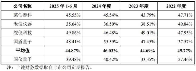 报告期内,国仪量子的综合毛利率分别为27.46%、33.35%、40.42%和39.48%,尽管随着公司经营规模的扩张,毛利率整体有所提升,但仍低于同行业可比上市公司毛利率均值。