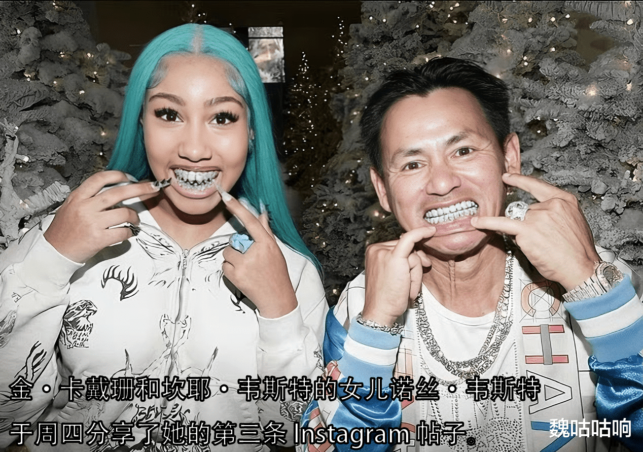 早在2024年1月,她就曾佩戴过一副价值14,000美元的 Gabby Elan 定制白金钻牙,以此致敬父亲坎耶·维斯特(Kanye West)那口价值85万美元、灵感源自007反派“大钢牙”的钛合金假牙。