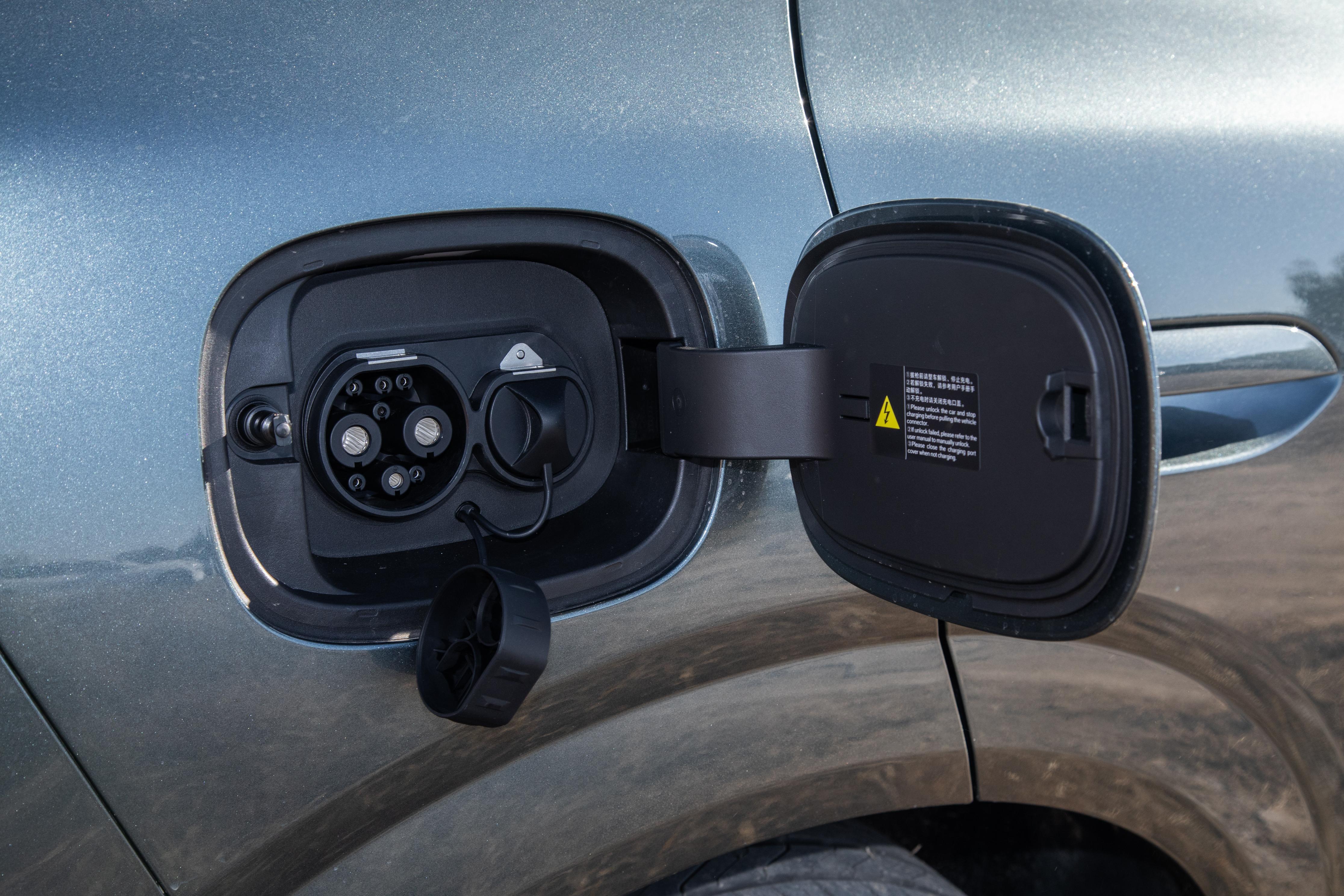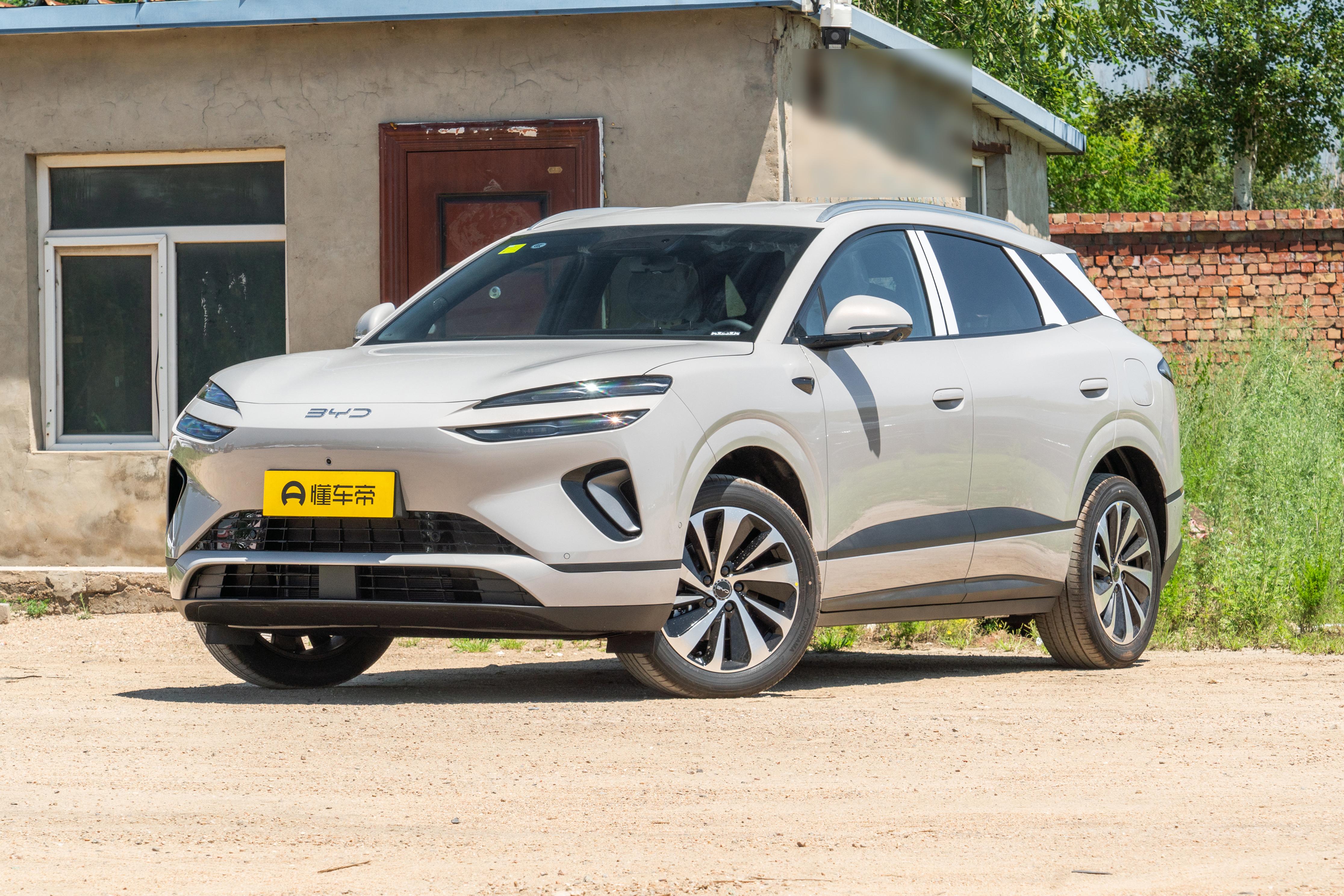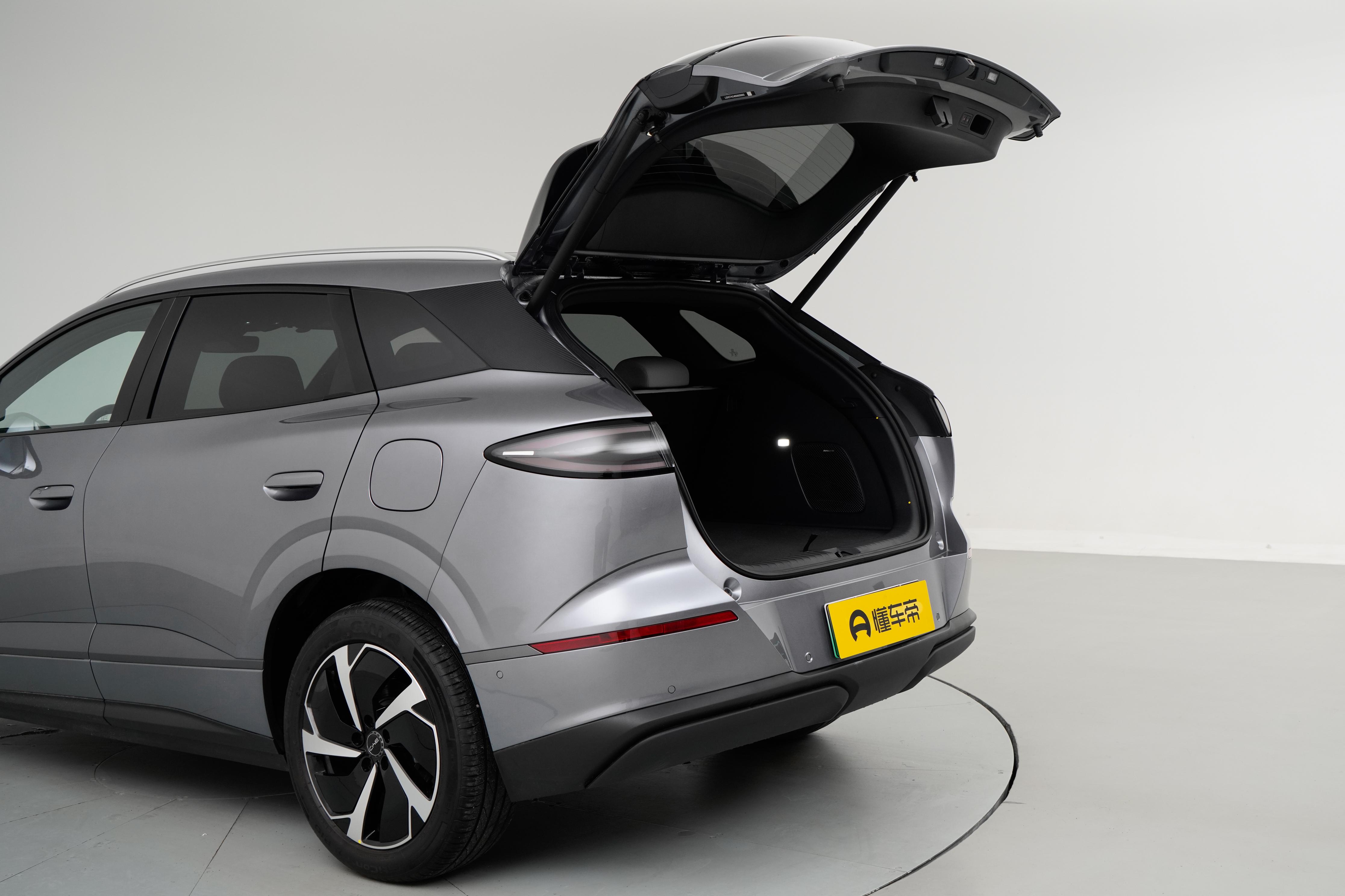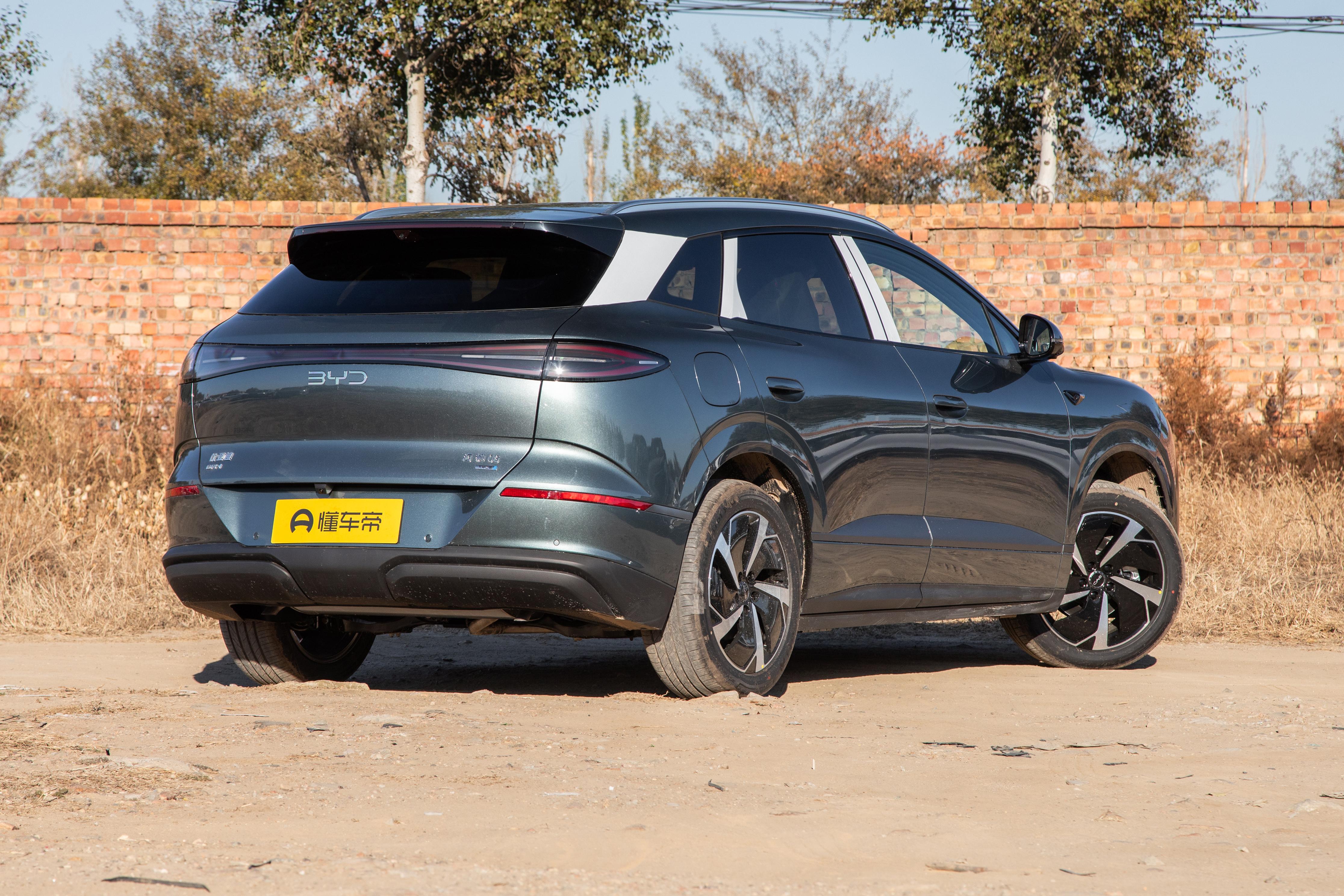 车身侧面,车顶线条流畅自然,与隐藏式门把手相互呼应,既增添了车身美感,又降低了风阻。逐浪跃动腰线从前翼子板一直延伸到尾灯,饱满曲面暗藏自然张力。车身下方裙部有银色饰板装饰,前后轮眉处有圆弧线条点缀,搭配19英寸低风阻破浪轮毂,营造出强烈的运动氛围。前排用的加胶玻璃,后排是隐私玻璃,既保证了 车内的静谧性,又保护的用户的隐私。