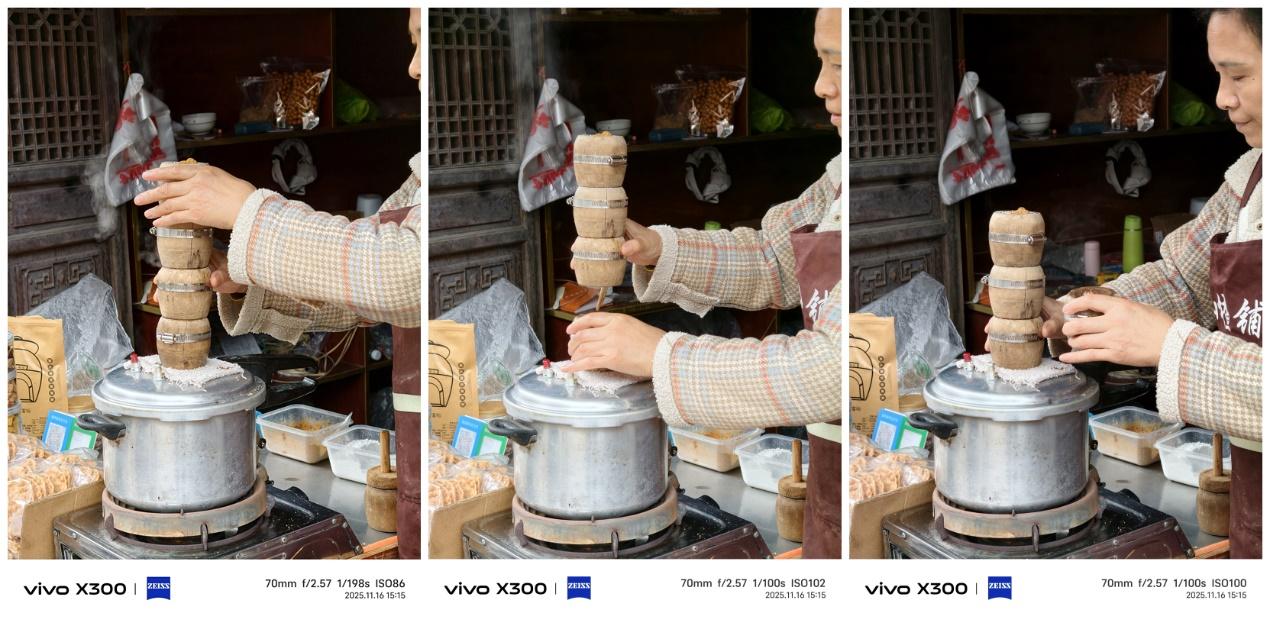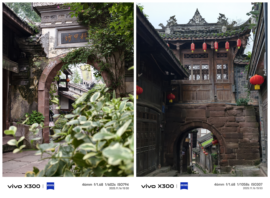 说到意境,就一定要试试X300的电影感三拼效果。这个功能只支持在2亿像素下运行,选择后直接拍摄,系统会自动分析画面并选取这张超高像素照片部分画面,生成三拼效果,通过二次构图拼接叙事,让照片有了更多维度的表达。