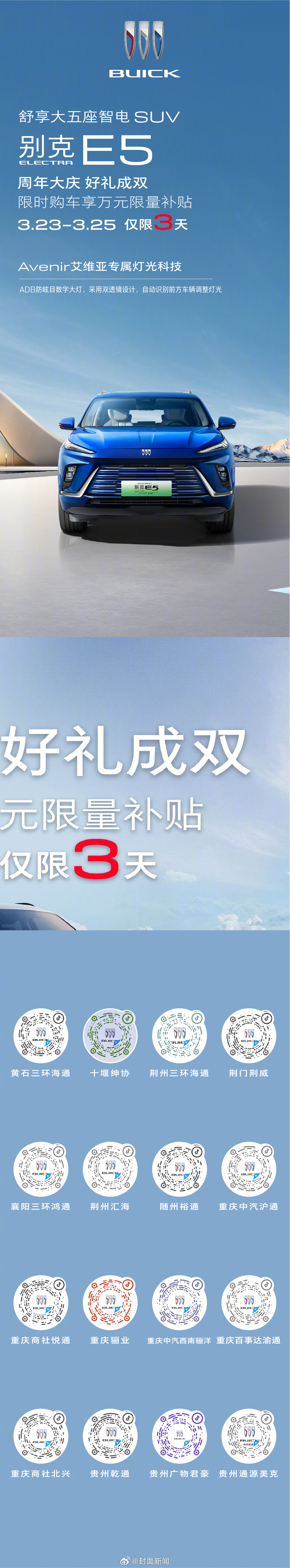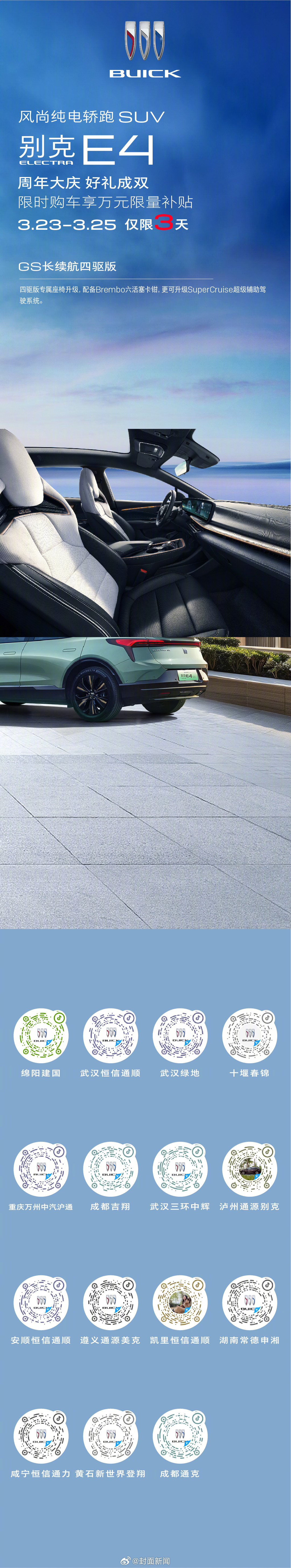 #周年大庆好礼成双##别克E4##别克E5# 限时购车10000元限量补贴!现在下定即送6000元商业保险,至高可享6000元置换礼,扫描锁定直播间,3月23日-3月25日限时3天,心动不如速速行动🎉