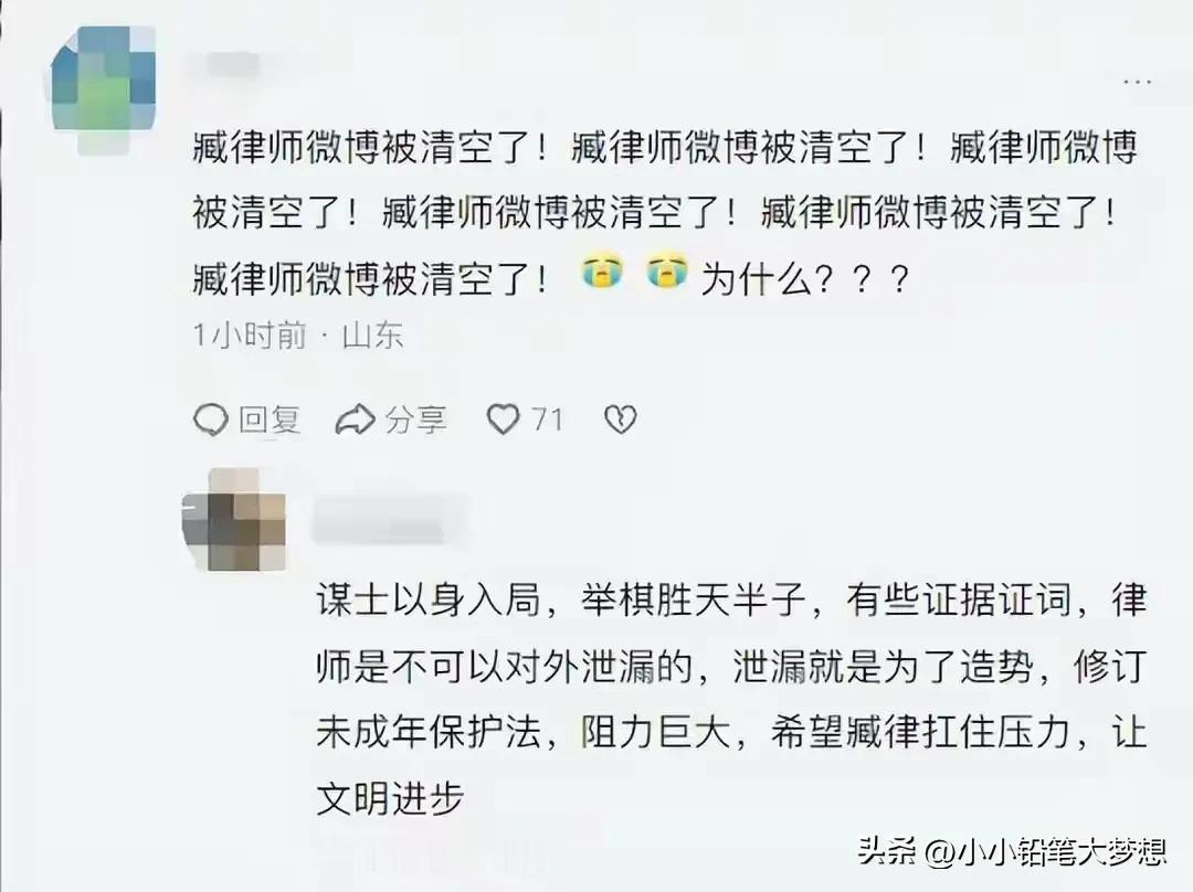 我说哪个女的这么嚣张?气的臧梵清律师大喊:“你是哪个部门的!你是哪个部门的!你是哪个部门的!”原来是她,果然有点背景。难怪,臧律师的微博都被清空了! 她面对樊律师质问“孩子在之前就有霸凌行为,为什么不去进行解决”,她哑口无言。 发生这样的事情,人家律师是正常调查,你为何阻止? 央视和人民日报都已经报道此事了,你觉得还能按得住不? 而最高检也已经表态了:“对未成年人实施故意杀人等严重犯罪要依法追究刑事责任!” 多地的检察院和法院也遇害男孩发声:“法不能向不法低头!” 所以遇到事情不能堵,堵是没有用,全国人民都在看着呢,配合人家办案,承认问题,才是最好的解决办法。 #记录我的2024# #我来唠家常#
