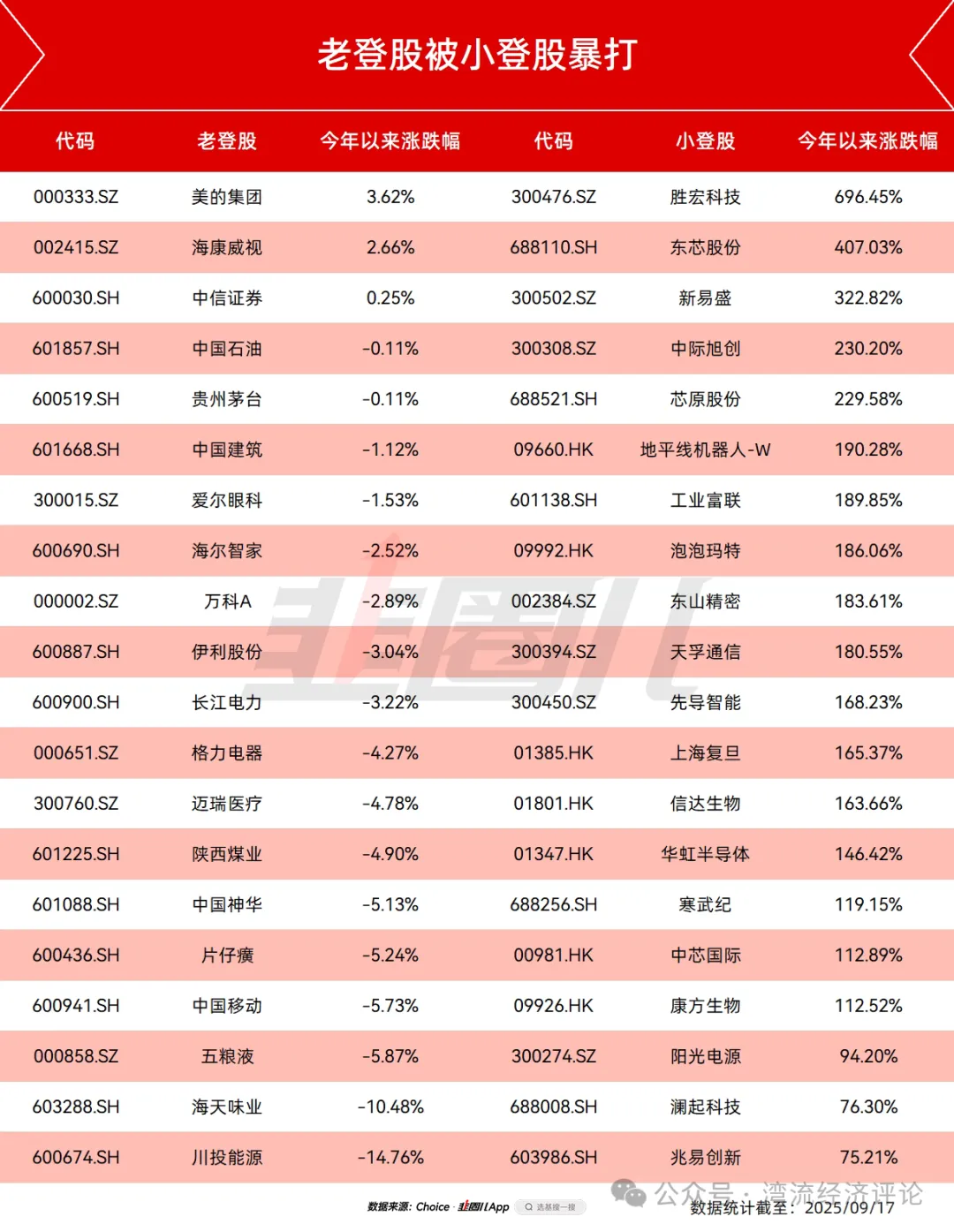 昔日意气风发的老登股,为何会惨败?以往默默无名的小登股,为什么能暴涨近700%?这里面有些门道:
