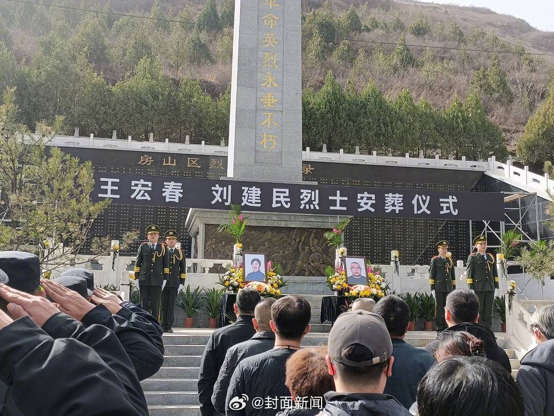 【英雄,请安息!#北京两名救灾牺牲烈士今日安葬#】3月28日,北京市房山区蓝天救援队王宏春、刘建民两位烈士的安葬仪式在平西烈士陵园举行。蓝天救援队分成两组护送,到了烈士家门口,很多村民自发围在一起送别。王宏春7岁的女儿抱着遗像进门的时候,很多人都落泪了。2023年7月29日至8月2日,北京市遭遇特大暴雨灾害,房山蓝天救援队王宏春和刘建民两名队员在抢险救灾工作中献出了宝贵生命。