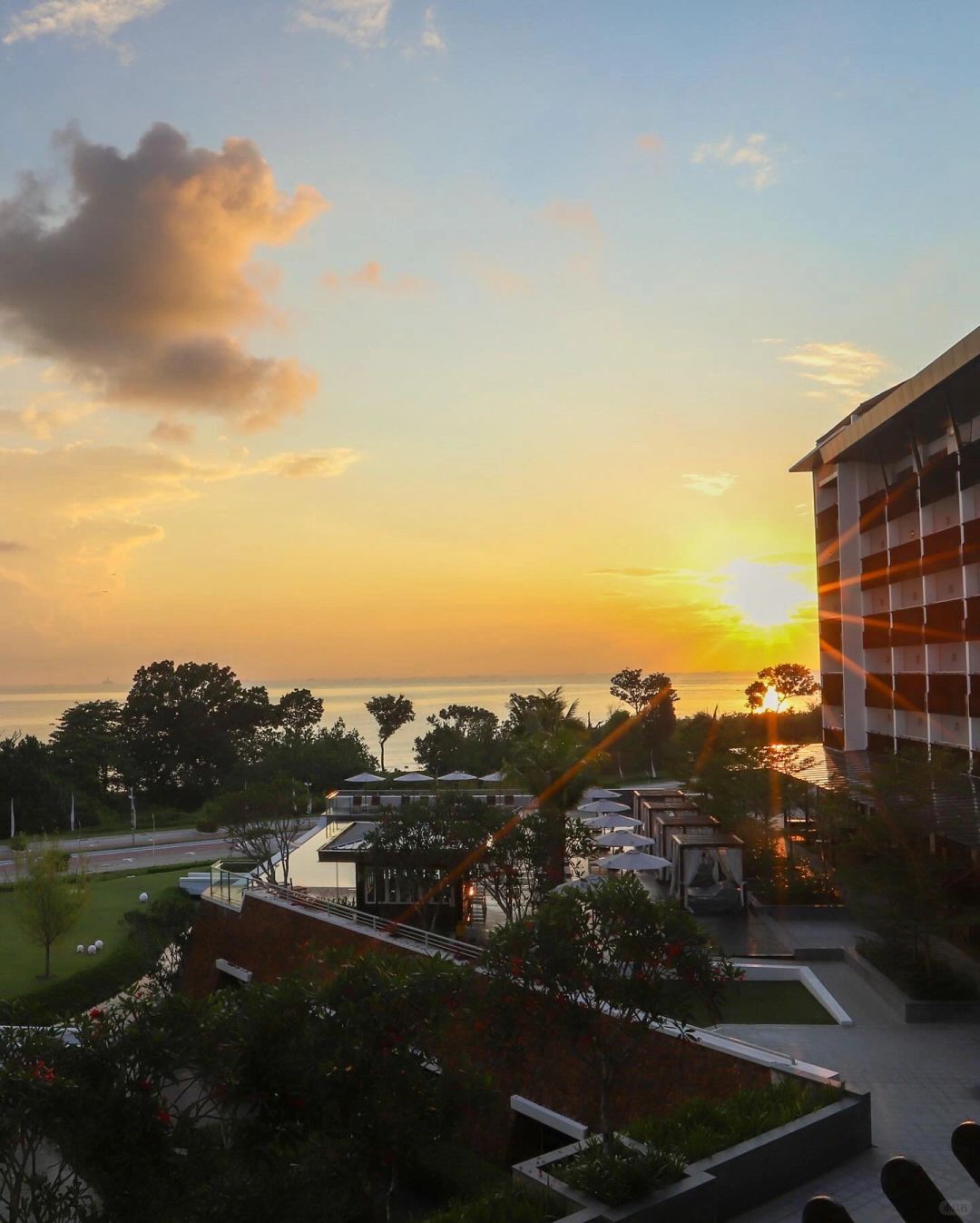 日出是迪沙鲁威斯汀酒店最美的时刻。站在阳台上就能看到。