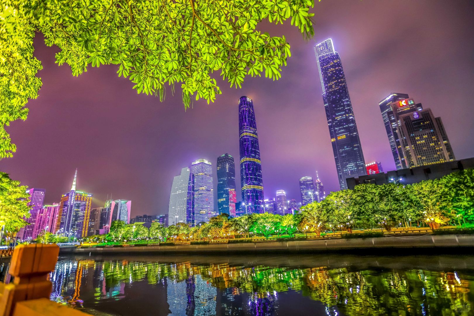 而正对面的广州小蛮腰是全球第二高的塔式建筑物,塔身散发出那五颜六色的彩灯,照亮夜空,夜景迷人。