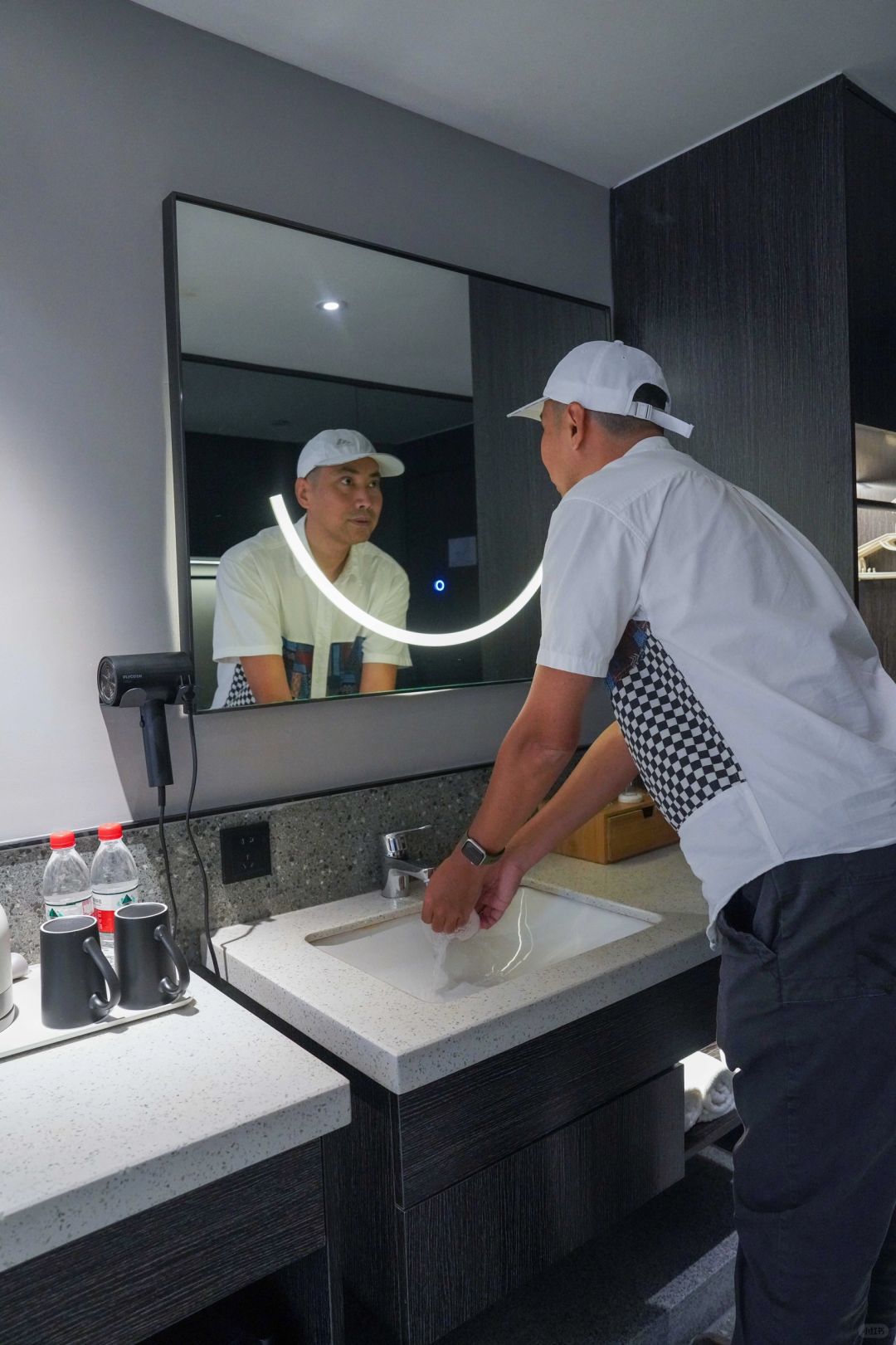 房间为轻奢装修风格,以黑白为主色调,有宽敞的浴室和质感的布草,所有的设施设备都非常的齐全。
