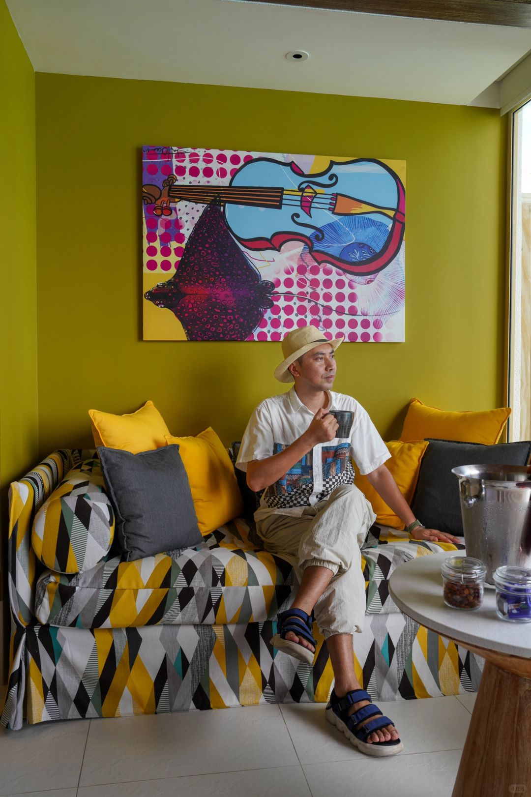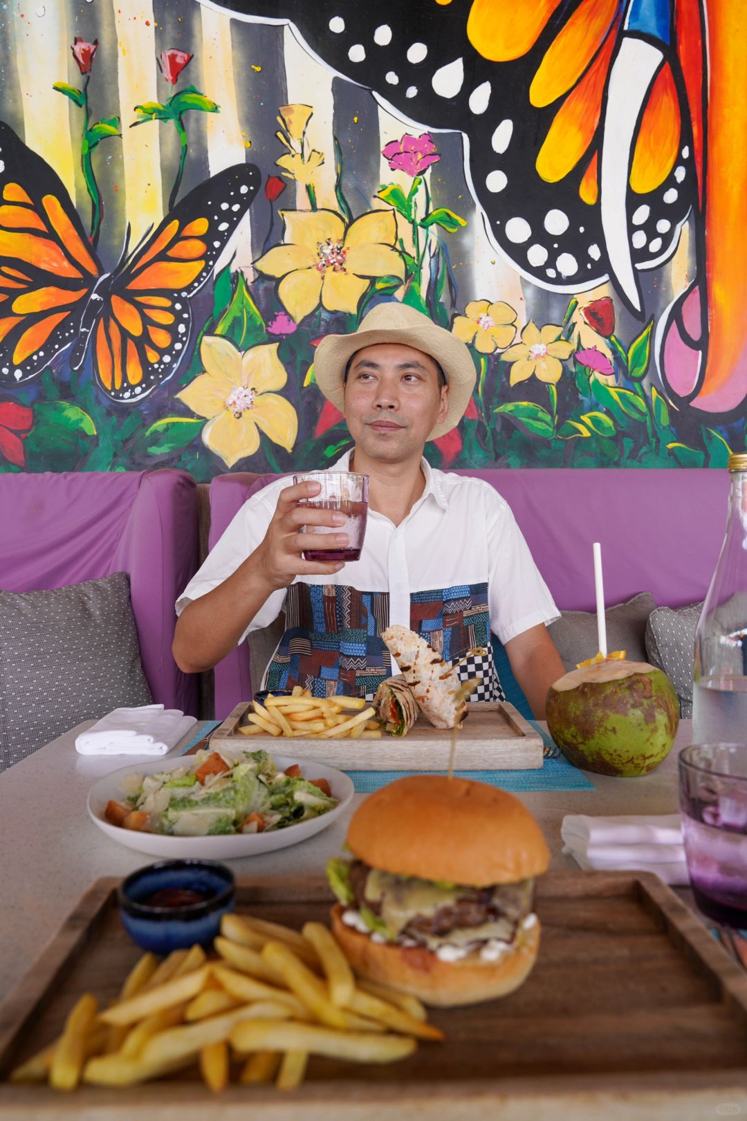 墙上壁画艺术作品融入了马尔代夫本地元素和时尚音乐相结合,加上绚丽的色彩搭配以及灯光配置,营造出一种抽象的艺术氛围,很符合充满活力的年轻人体验。