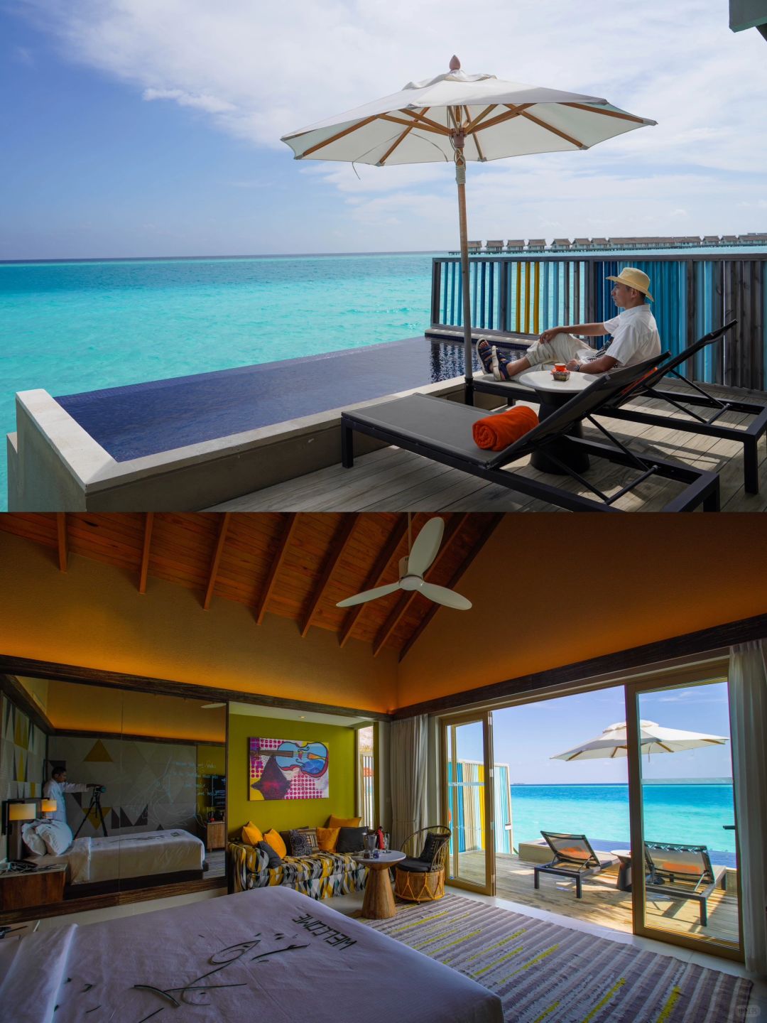 入住在硬石酒店的钻石水上别墅,房间色彩丰富,设计时尚明快,简约;