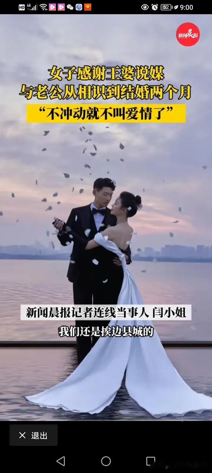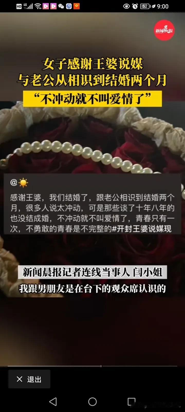 “感谢王婆为我们牵线”,一名女子称,自己和现在的老公认识不到两个月就结婚,他们两个是在开封王婆的台下认识,两人并没有上台,当时两个人就站台,因为两人说话的语音很像,对方就说你是不是离我住的地方很近? 随后,两人就发现大家都是挨边县城,然后就好上,现在他俩结婚,她很感谢王婆为他们牵线,很多人质疑是不是太快?会不会太冲动? 她的回复是:“很多人谈了十年八年的恋爱都没有结婚,不冲动就不是爱情,青春只有一次,不勇敢的青春是不完整的!” 看到两个人拍的婚纱照,真的很美,可以说是郎才女貌,如果家境差不多,彩礼又不高,大家又合得来,就冲动一回吧~ 这可能就是大家所说的一见钟情? #记录我的2024# #我来唠家常#