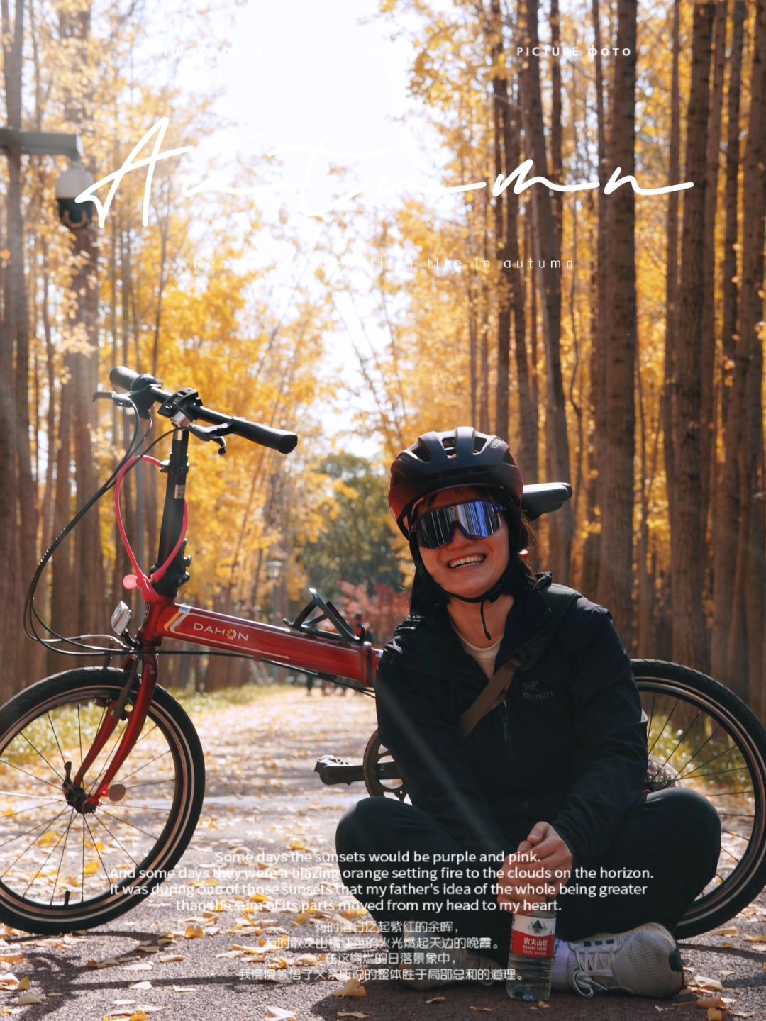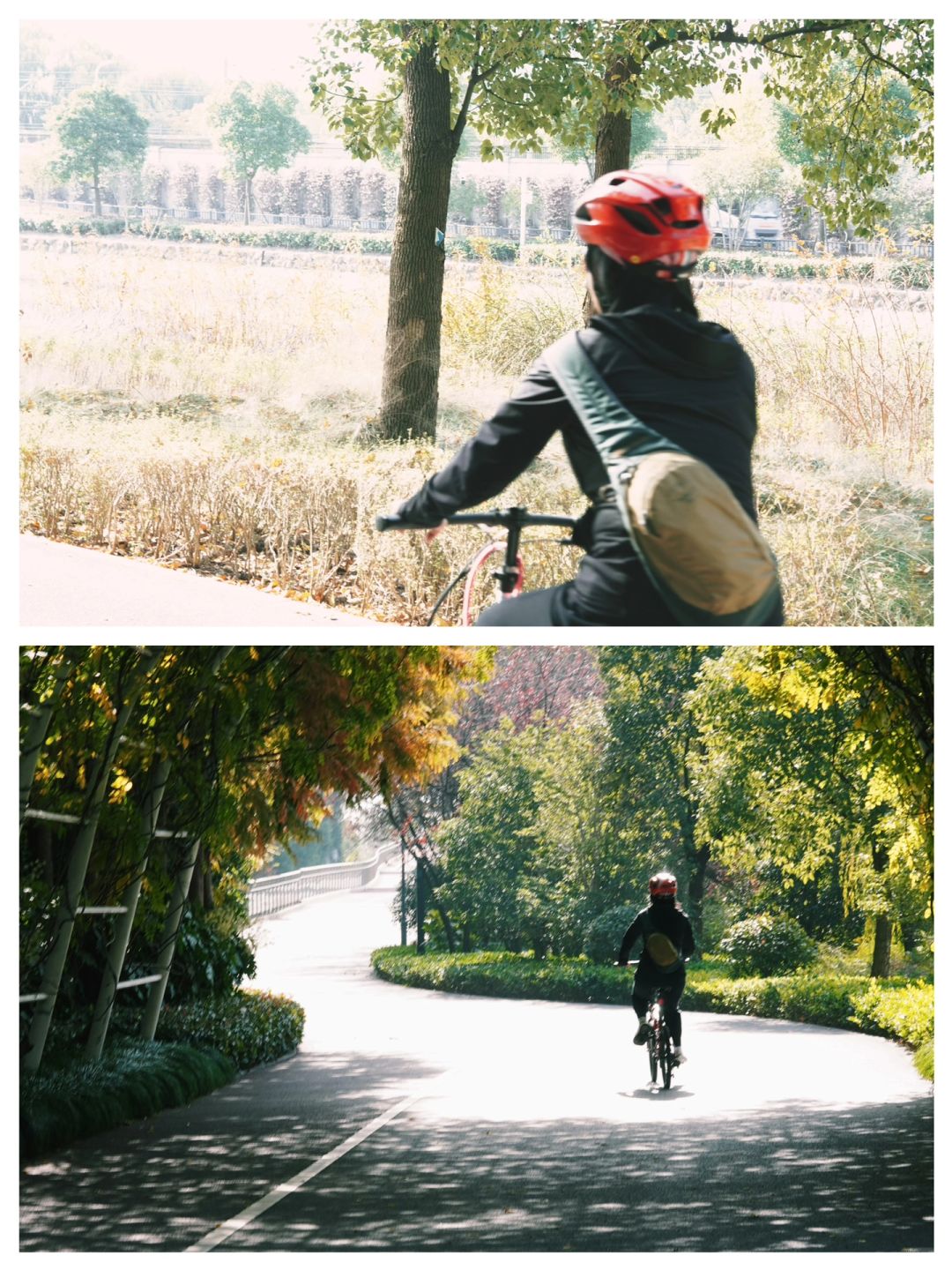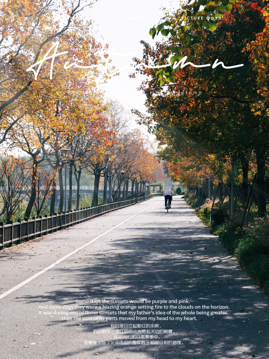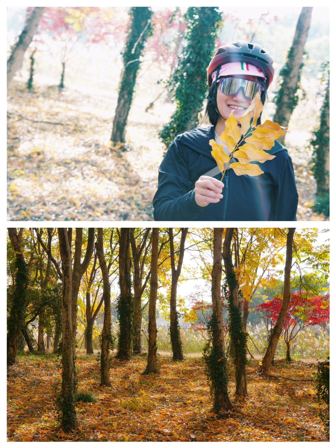 🍂点位:进入后往前骑行约500m,经过一座红色廊桥即可到达银杏小道🍂