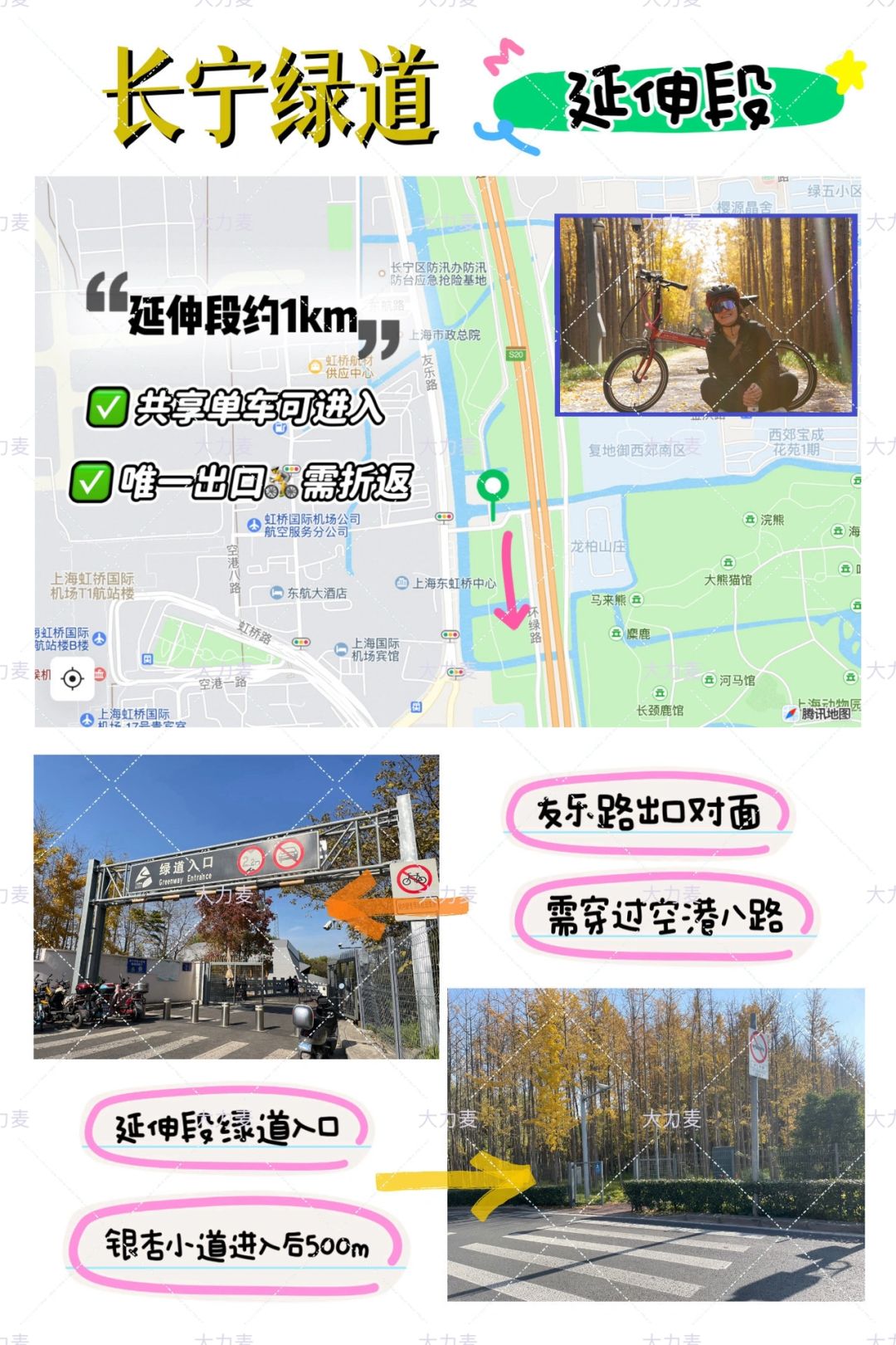 ‼️仅打卡银杏小道,可以直奔友乐路出入口,直接步行或骑行进入绿道延伸段;