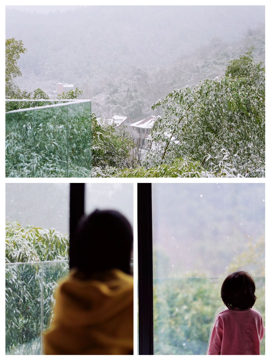 我们最后的心动来自突如其来的大雪,一家人躺在榻榻米上,打开幕布就是大雪飘落山野的景象❄️