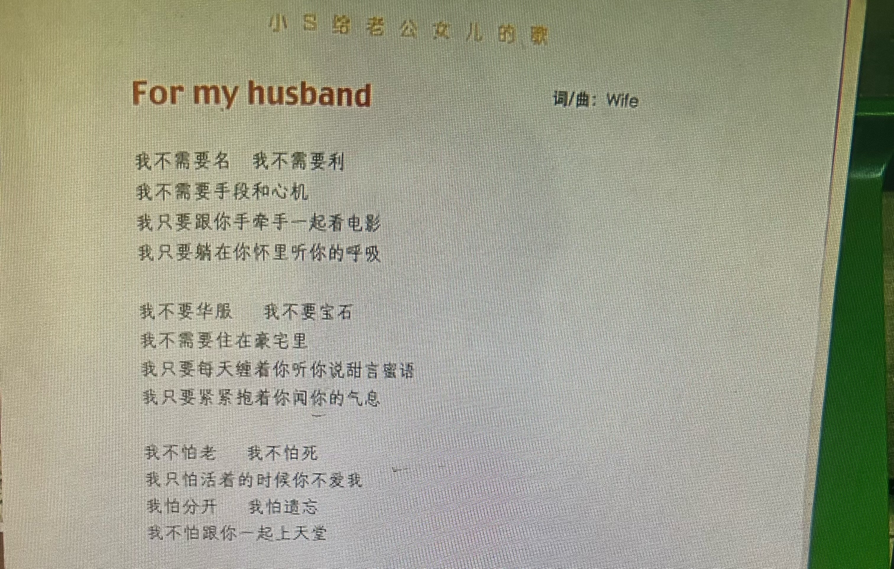 小s赶紧补充:“我老公对我也很好啊,我常讲啊,煮早餐啊,小桌子一起吃啊”