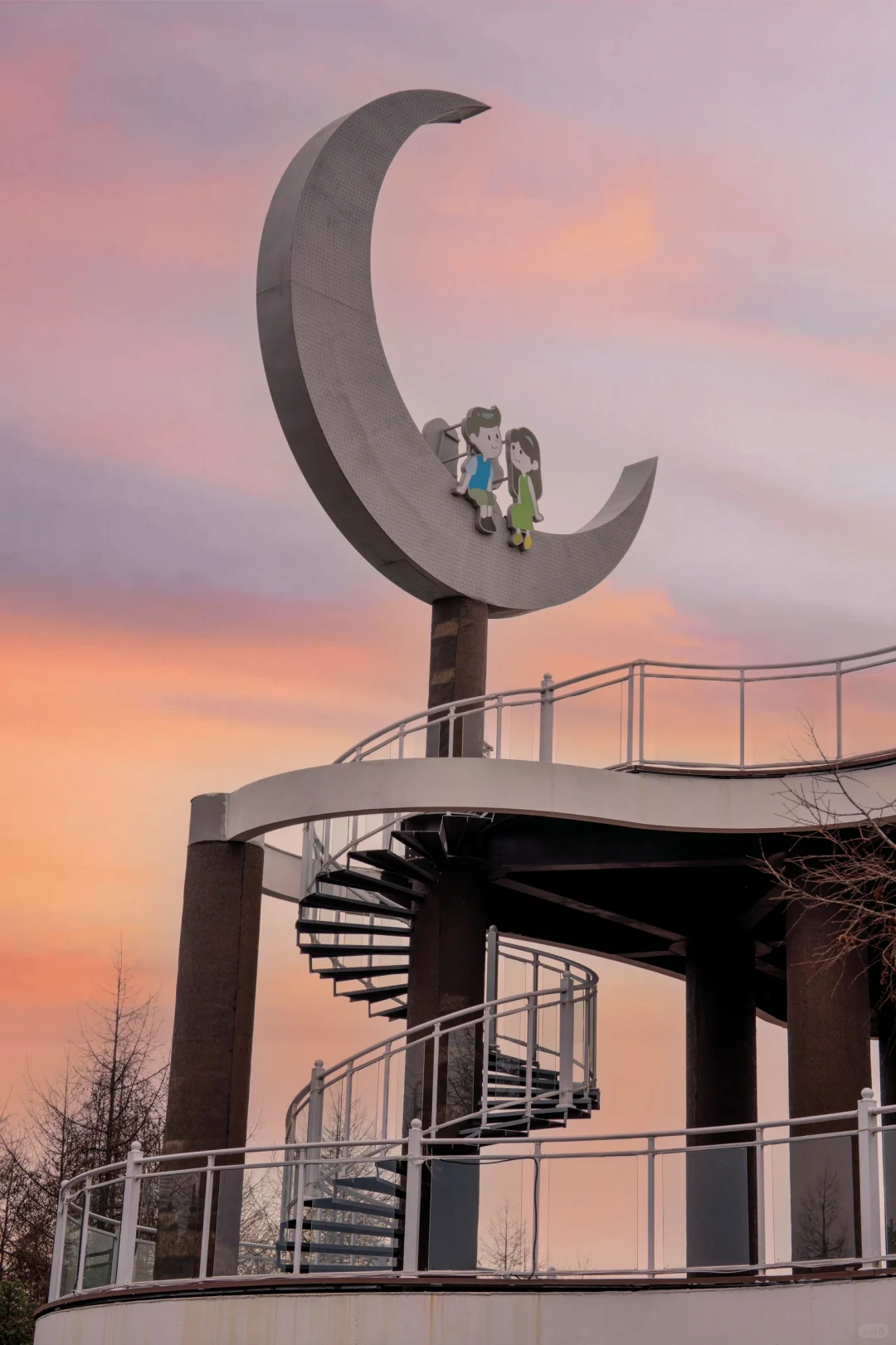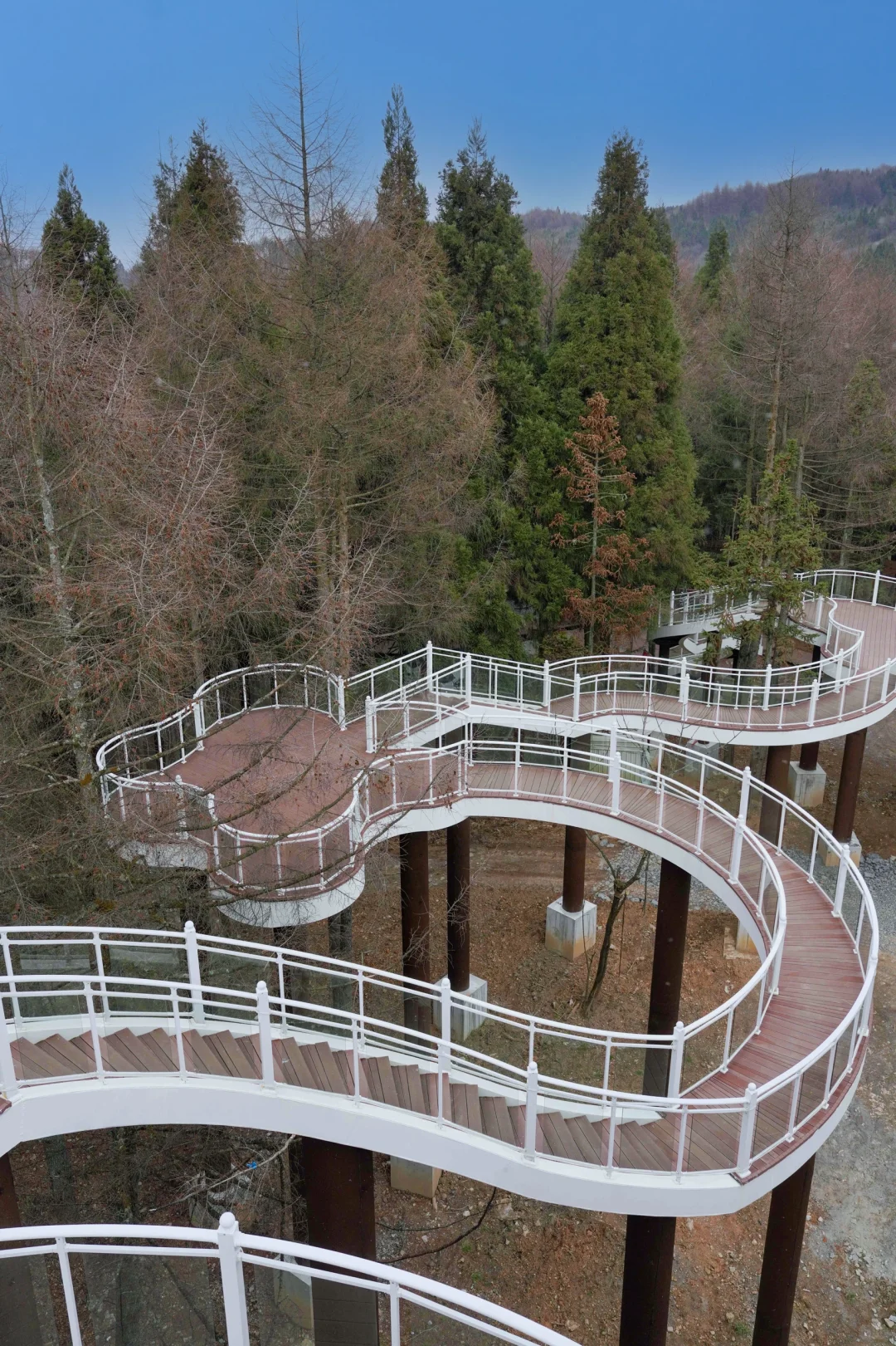 漫步在“彩云追月”的观景台,约20米高的钢木结构,树顶旋转栈道组合而成,白天踩在云端,夜晚伸手揽月,犹如仙境一般。🌝