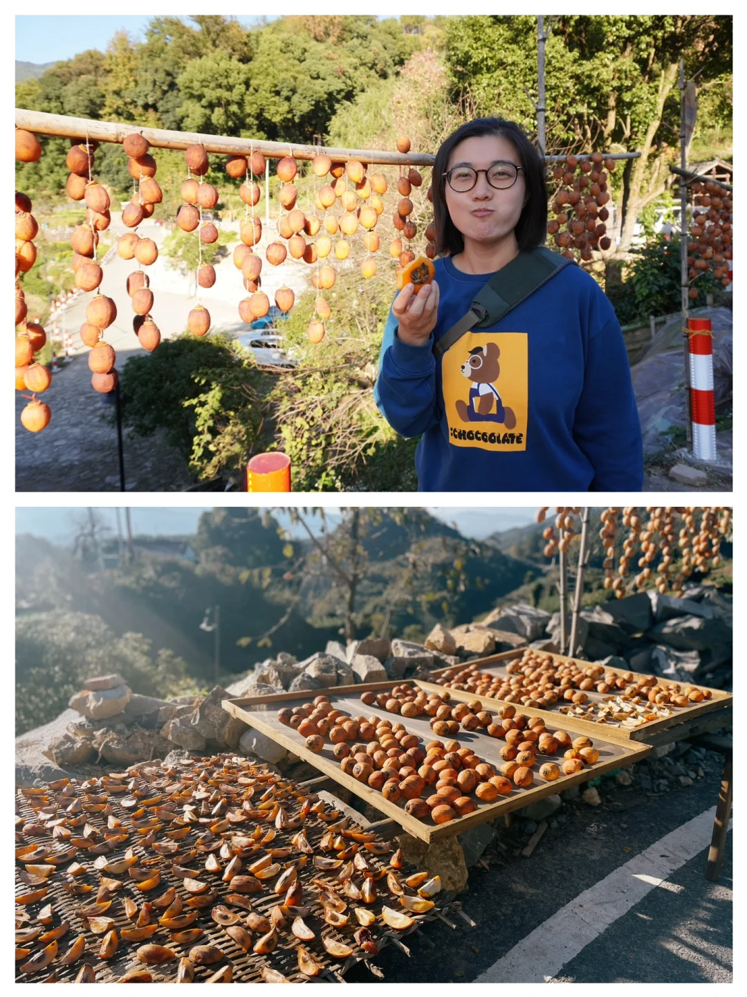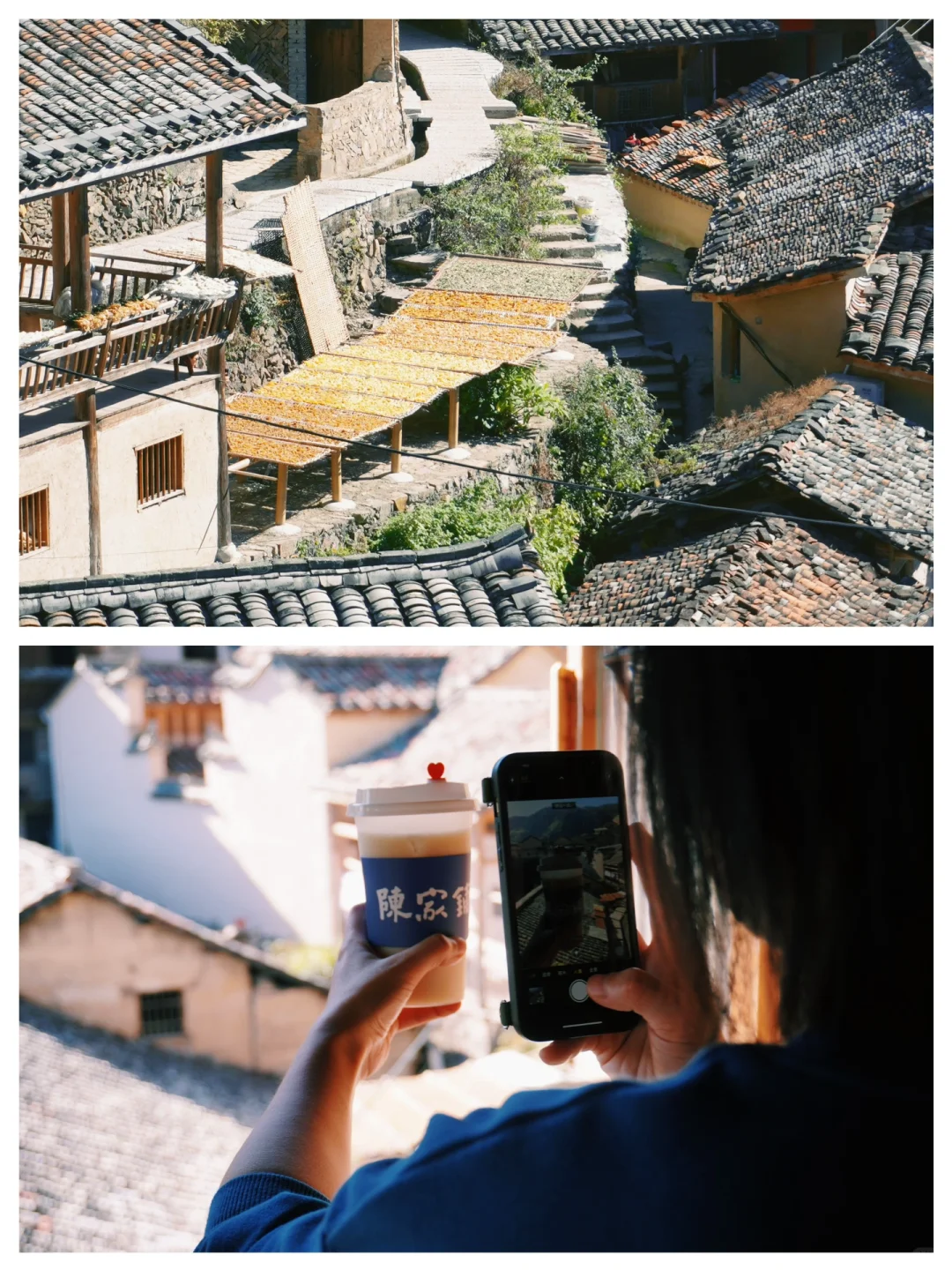 终于如愿解锁了一直在清单上的秘境松阳‼️ 也只有来到了这里,我们心中的“江南秘境小城”才有了清晰的模样: 🟣是“暖暖远人村、依依墟里烟”式的田园乡村; 🟣也是漫步古道登上悬崖古村后的悠闲时光; 🟣更是在日落时分看“金色布达拉”的治愈时刻; 虽隐于大山之中,也不妨碍松阳成为我们2023最喜欢的目的地👏👏除了2天1晚的出行着实太不过瘾…… [打卡R]2天1晚行程 Day 1:中午抵达-杨家堂村(距陈家铺🚗约1h) Day 2:陈家铺村-西门圩廊桥、松阳古街(距陈家铺🚗约1h)-返程 [打卡R]出行实用信息 交通:🚄高铁约2.5h(上海虹桥-丽水站),自驾约1.5h(丽水-松阳县) 🏨住宿:陈家铺庄河村(位置绝佳!距先锋书局🚶约0.5h) ‼️位于半山腰的赏秋c位,在阳台就能get金色梯田与日出云海[偷笑R] [打卡R]松阳玩什么? [向右R]杨家堂村(图2、3、4) ✅依山势错落而建的古村落,在阳光下闪闪发光,被誉为“金色的布达拉宫”; ✅村口的夫妻树下,有着手机就能拍出人生照片的绝美光影; ✅随处可见的晒柿子,吃到了比拳头还大的柿子果🍅 [向右R]陈家铺村(图5、6、7) ✅一个来了就会不由自主慢下来的山巅古村; ✅被誉为“全球最美书店”的先锋书店; ✅在阶梯式村落中非常吸睛的绚烂晒秋; [向右R]松阳老街 长达1800年的历史,当地人戏称其为“打铁理发小吃一条街”,不仅汇聚了松阳的美食精髓,也充满着人间的烟火味。