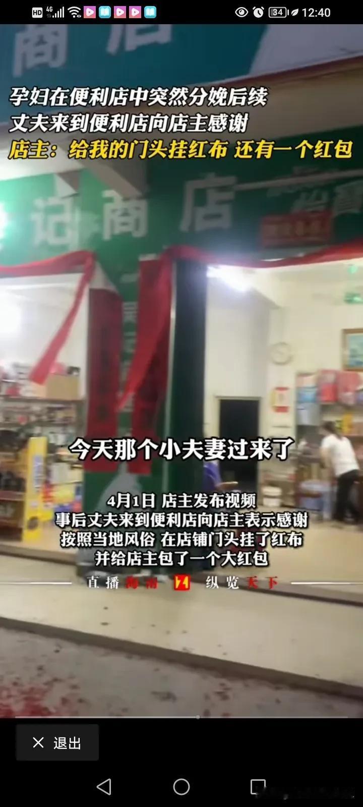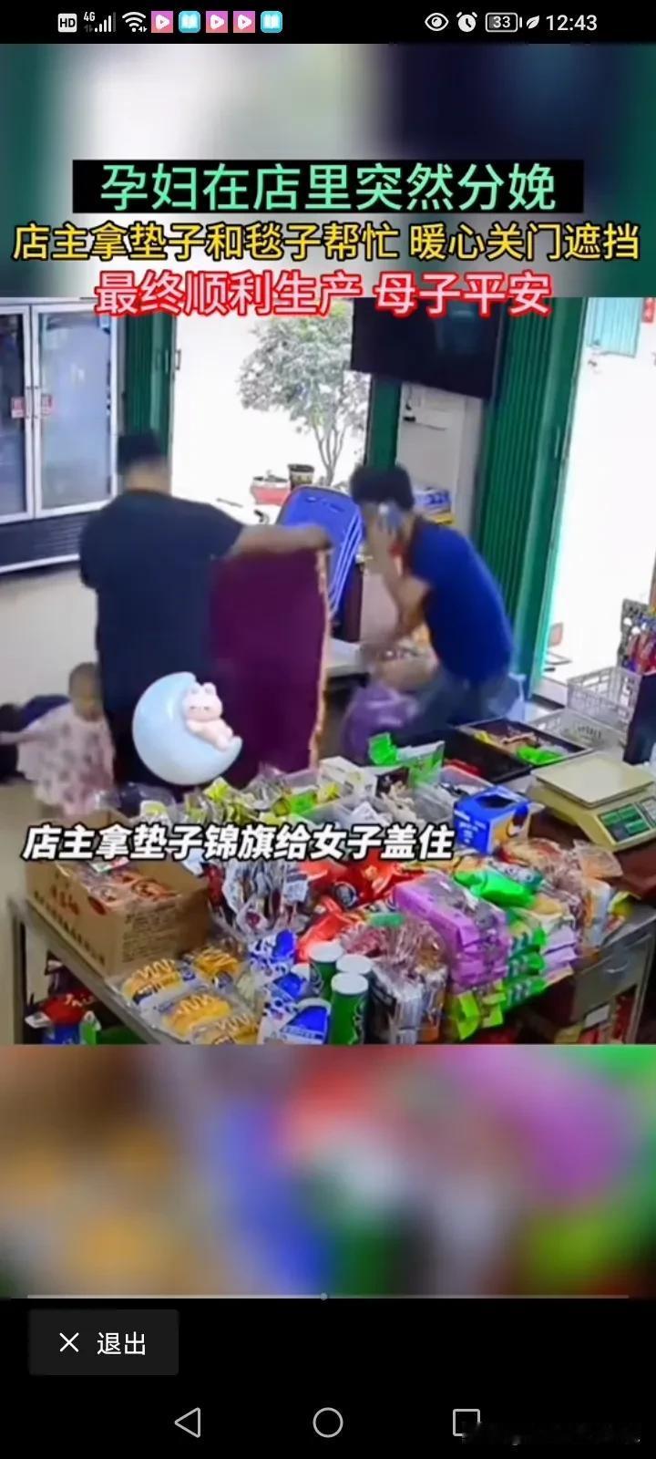 广东惠州,孕妇跑进便利店生小孩的后续来了,大家纷纷都称这对小夫妻是懂礼节的人,今天老板发视频称,孕妇生完孩子后,女子的老公已经登门道谢了。 3月30号,广东惠州,一名孕妇突然跑进了一家便利店,然后躺在地上,跟老板说自己要生孩子了,让他赶紧帮忙打120,老板当时是懵逼的,但是孕妇又说了一句,孩子要出来了,老板看地板已经流出来一滩羊水,立刻跑到屋内拿了一块纸皮给她垫着,然后又拿出了一面锦旗给她盖上,在打120的同时,还立刻把便利店的门给拉上,干脆不营业了。 很快,救护车就来了,老板一家帮忙把孕妇抬上了车,救护车走了之后,老板默默的把孕妇留下来的“东西”给清干净。 后来孕妇顺利生产,母子平安。 这件事情引起了很多网友的热议,有人感叹这位女子生孩子就像拉屎一样简单,也有的人说在人家店里生产,毕竟有血,这对店家不太好,这不太吉利的。 而我知道的是,有一些房东知道租户怀了孕也会劝租户退租。 不得不说,这个老板格局真大,不但没有把孕妇赶走,还体贴的为她遮挡和叫救护车。 而孕妇一家也是感恩的人,女子的老公特意登门拜谢,不但给他的门店挂了两块红布,还给了店主一大的红包。 这种双向奔赴,真的很感人,很正能量,老板有这样的格局,他日后肯定生意兴隆,赚大钱! #我来唠家常# #记录我的2024#