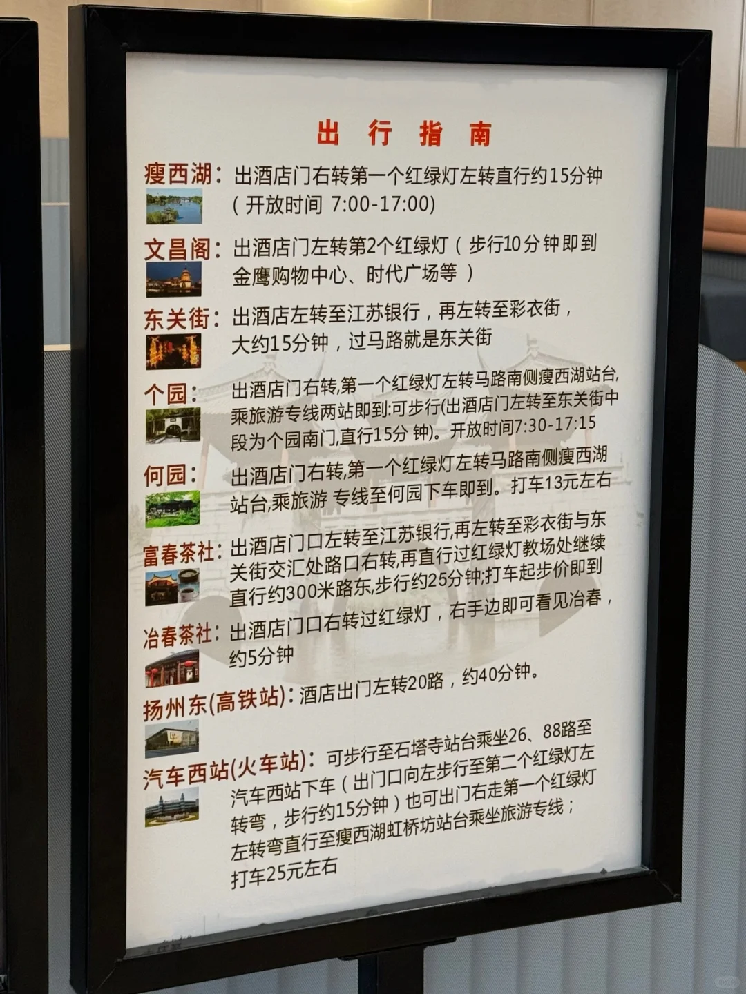 🚗行:扬州主城区不大,而且打车不贵,也可以借小黄车,都很方便。